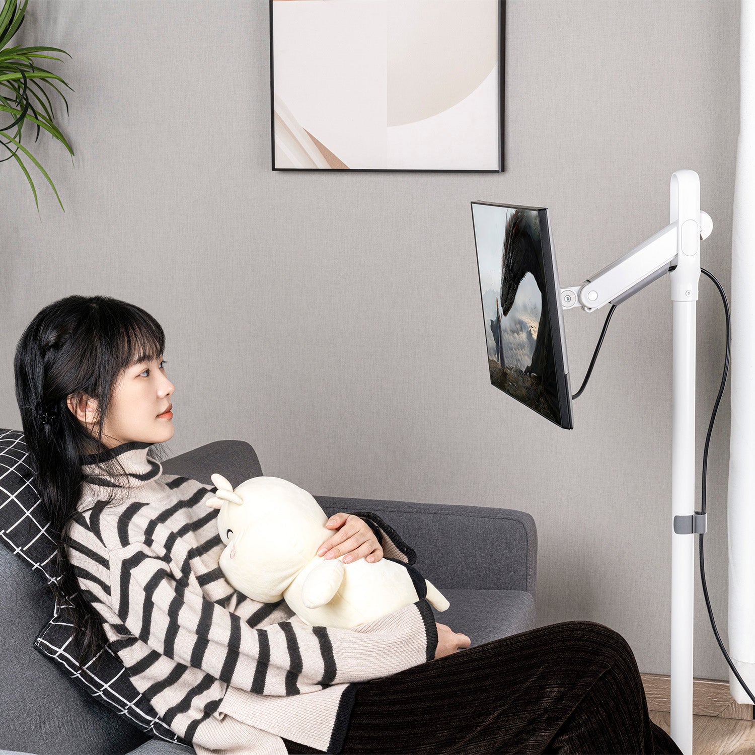 Az állványra 17 és 35 hüvelyk közötti képernyőátlóval és 75x75 vagy 100x100 mm-es rögzítőcsavar-távolsággal (VESA) rendelkező monitort vagy TV-t tudunk felakasztani.