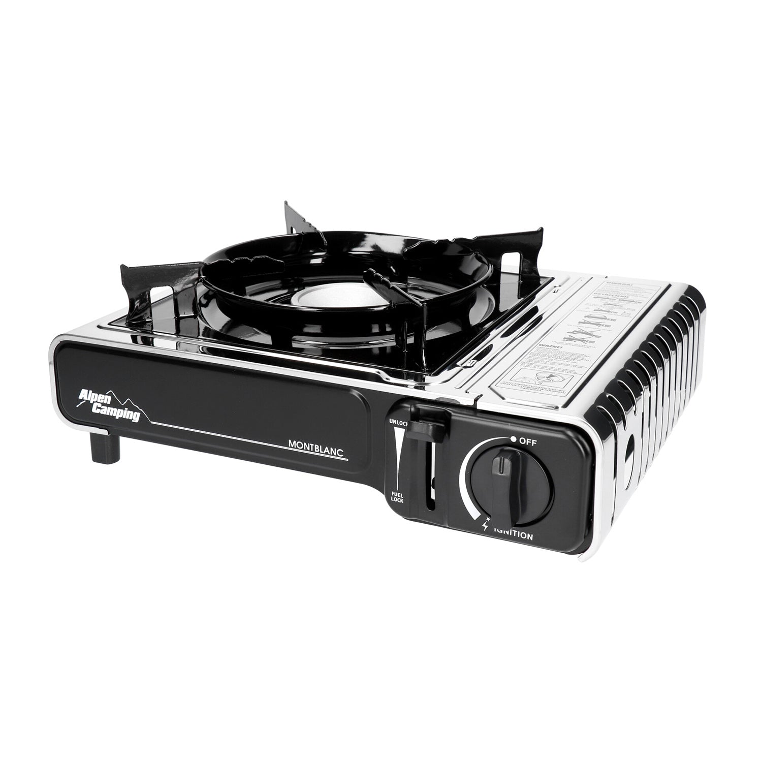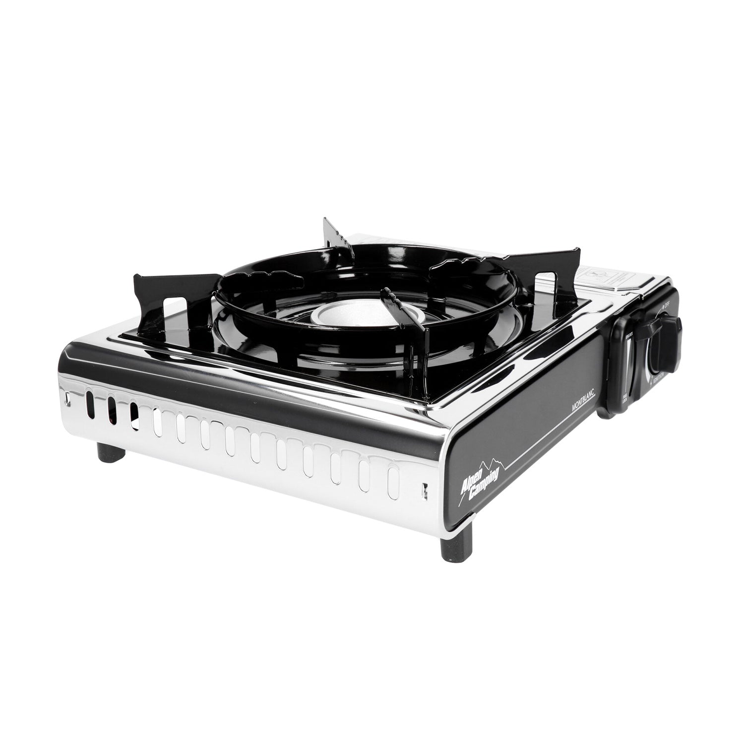 Alpen Camping kempingfőző, teljesítmény: 2,2 kW, gázfogyasztás 160g/h, piezo gyújtás, MONT BLANC