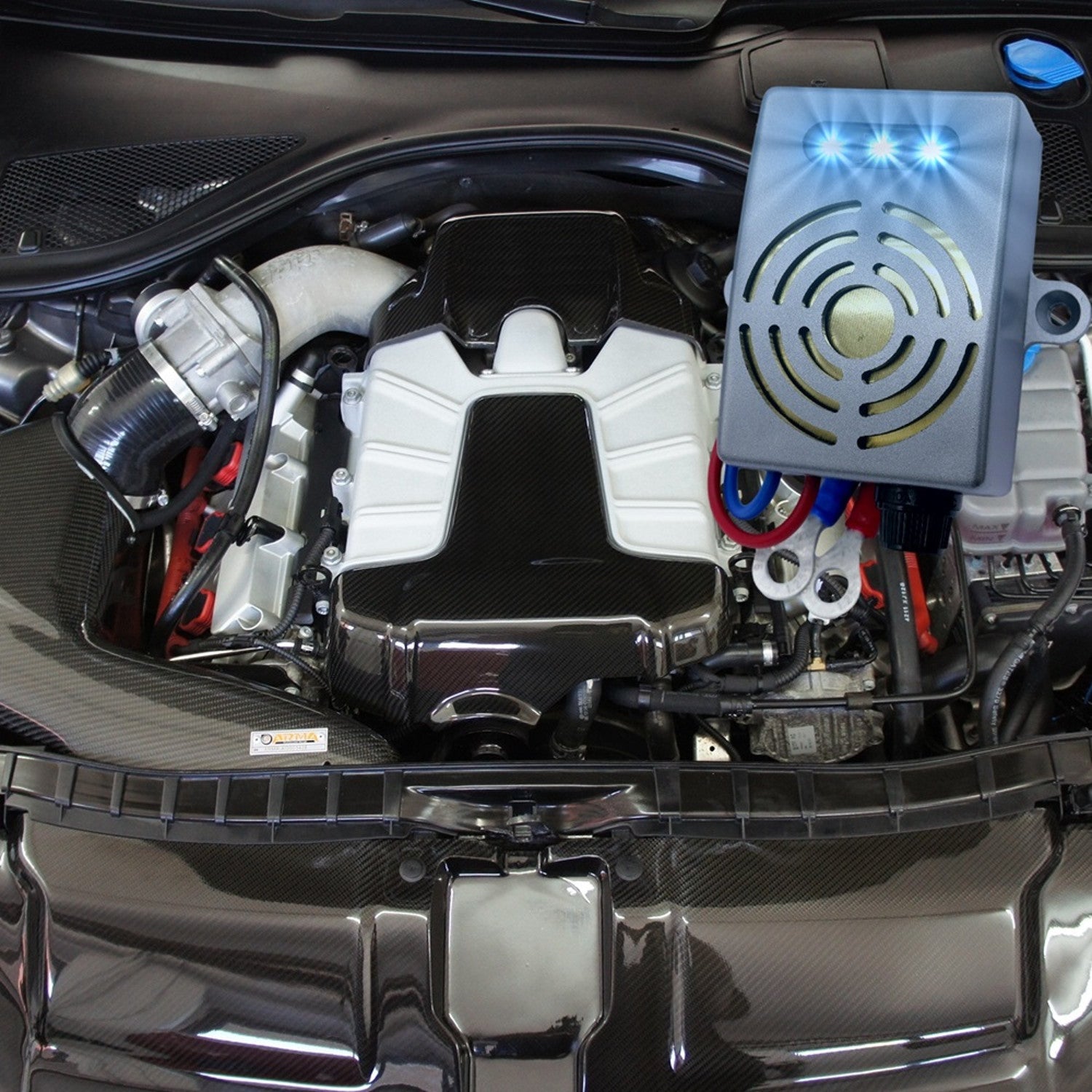 A készülék a legnagyobb 50 mm-es zúgóval, automatikus frekvenciaváltó modullal és nagy teljesítményű villogó panellel van felszerelve. A megfelelően modulált ultrahang erős villanásokkal kombinálva könnyedén elbánik a legellenállóbb kártevőkkel is. A kibocsátott jelek széles hatótávolsága garantálja a hatékony kártevőirtást, modulációjuk megakadályozza, hogy a betolakodók hozzászokjanak az állandó hanghoz. Az erős villanások félelmet keltenek az állatban, hatékonyan elriasztva azt attól, hogy a motorháztető alá hatoljon.