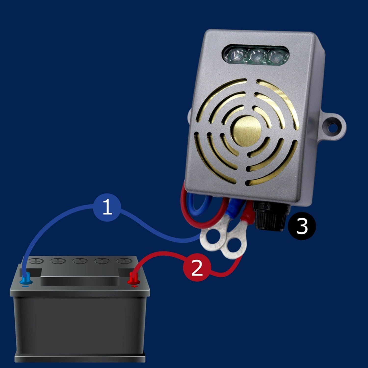 A készüléket az egyszerű telepítés jellemzi - két gyűrűs csatlakozóval végződő kábelt közvetlenül az akkumulátorhoz csatlakoztatunk.