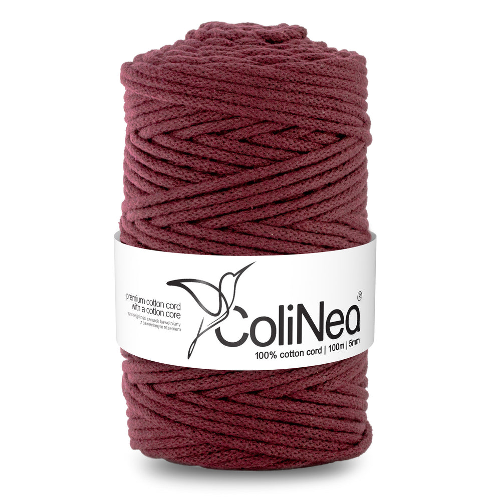 ColiNea, pamut zsinór pamut maggal, fonott, 5mm, 100m, bordó, burgundi