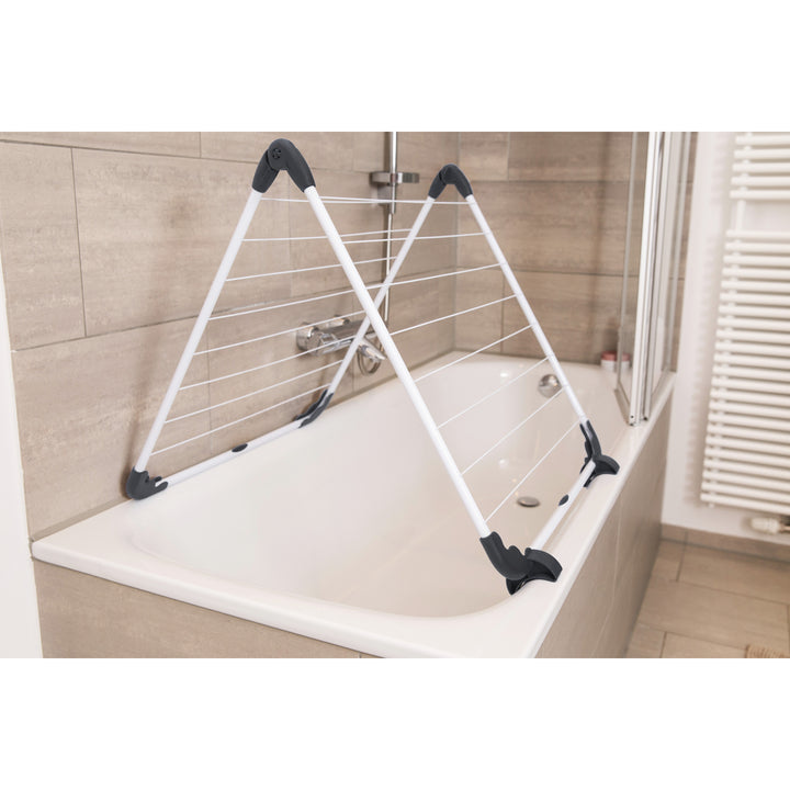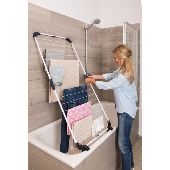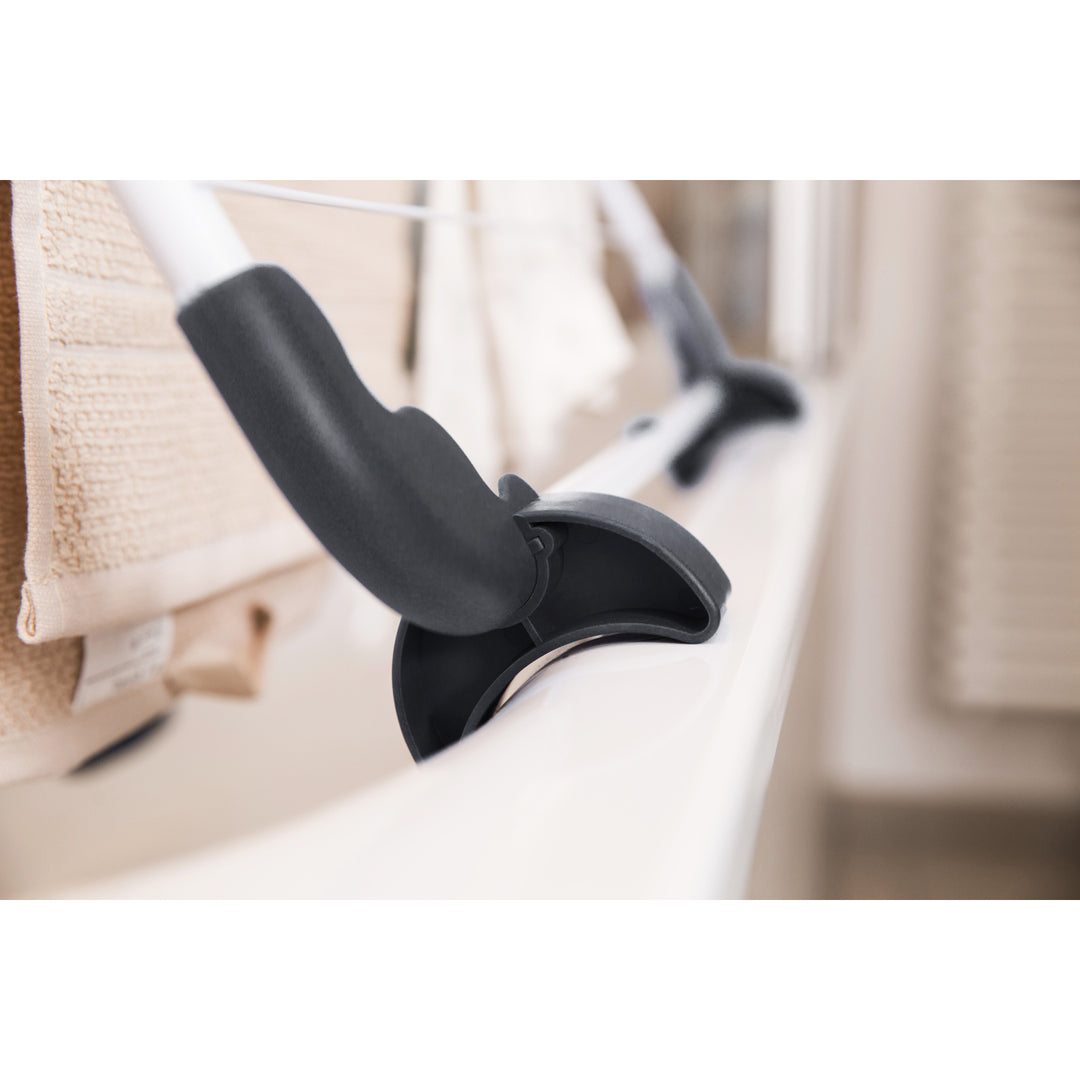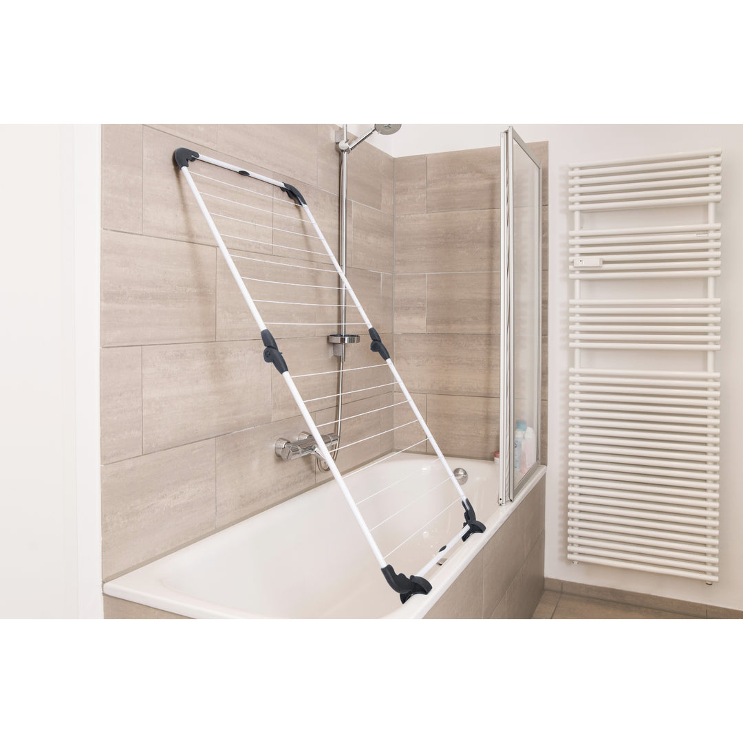 Az állítható kötéseknek köszönhetően az Acrobath szárító a kád bármely szélességéhez igazítható. A fürdőkád szélére kinyomhatjuk, részben a kád melletti falon vagy a kád felett fekvő falra.