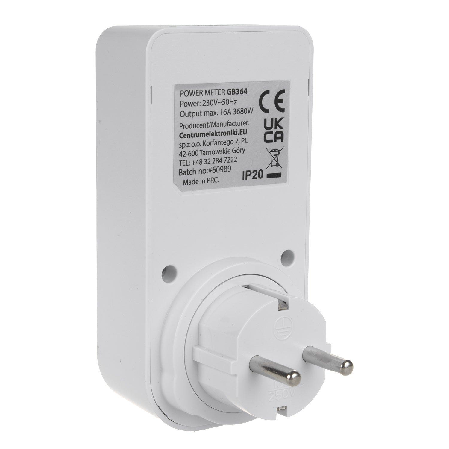 GreenBlue energiamérő, wattmérő, F típus, 220-240V AC, 50Hz, max. terhelés 16A, IP20, beépített akkumulátor, GB364 F