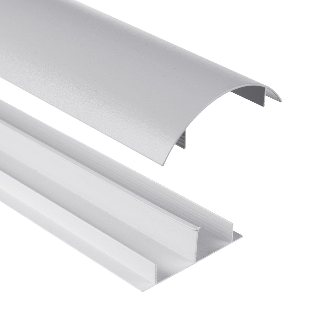 A szegélyléc kiváló minőségű alumíniumból készült, ami biztosítja a tartósságát, a mechanikai sérülésekkel szembeni ellenállását és elegáns megjelenését, amely a legtöbb modern belső térbe illeszkedik. Félköríves keresztmetszete lágy vonalakat és semleges megjelenést garantál bármilyen felületen.