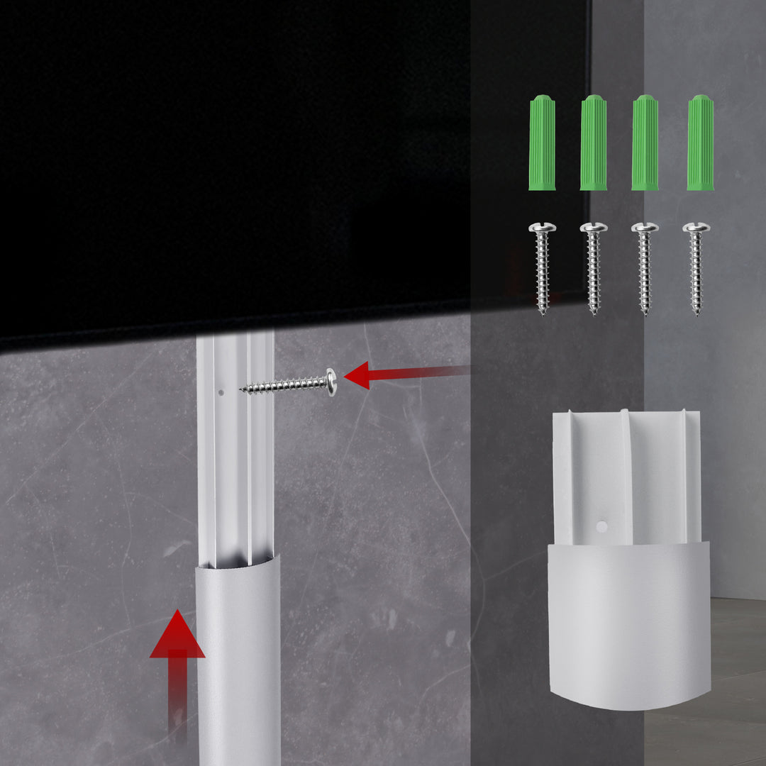A lábazat rögzíthető öntapadós csíkkal, amely ideális a sima felületeken történő gyors és beavatkozásmentes felszereléshez, vagy a mellékelt dübelekkel és csavarokkal, amelyek nagyobb terhelés esetén vagy nehezebb aljzaton is biztosítják a stabilitást.