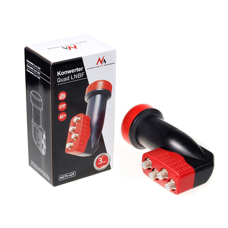 Kiváló minőségű, univerzális műholdas négyes átalakító alacsony, 0,1 dB-es zajfaktorral.