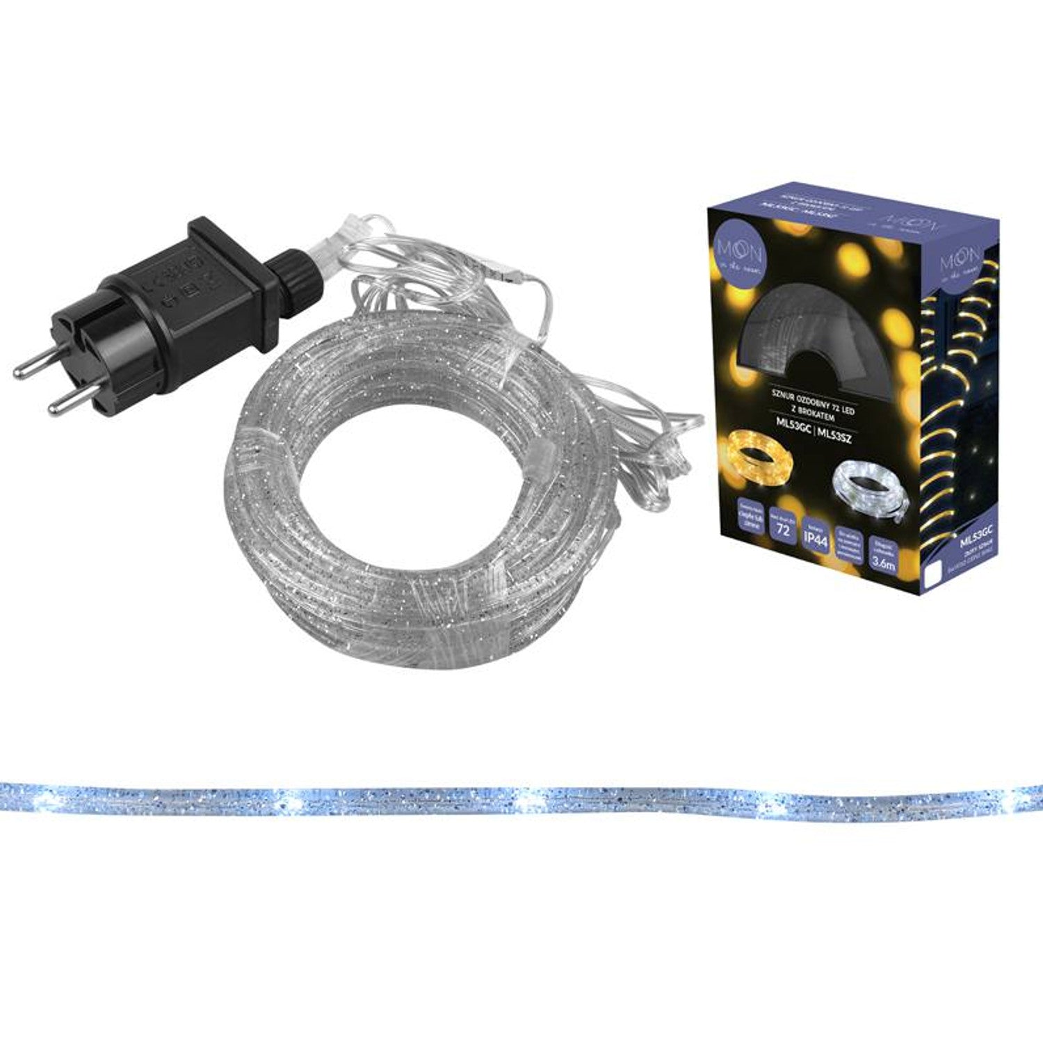 ML53SZ 72 LED 3,6m-es, csillogó ezüst hidegfehér színű dekoratív kábel IP44 IP44