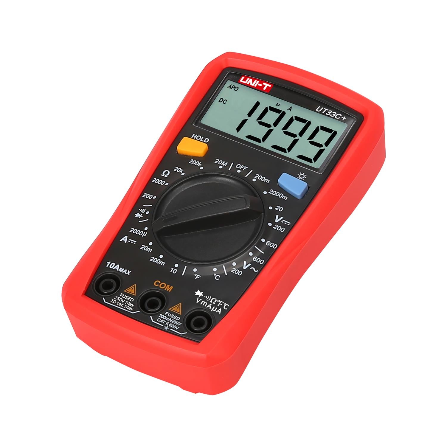 Az UNI-T eredeti UT33C+ univerzális digitális mérőműszere, amely képes hőmérséklet, ellenállás és alapvető AC/DC elektromos paraméterek mérésére. Ezenkívül a mérő lehetővé teszi a diódák és az áramkör folytonosságának ellenőrzését. A kivitelezés minőségét és a működés megbízhatóságát az UNI-T márka igen nagy népszerűsége és a piacon elfoglalt állandó pozíciója igazolja.