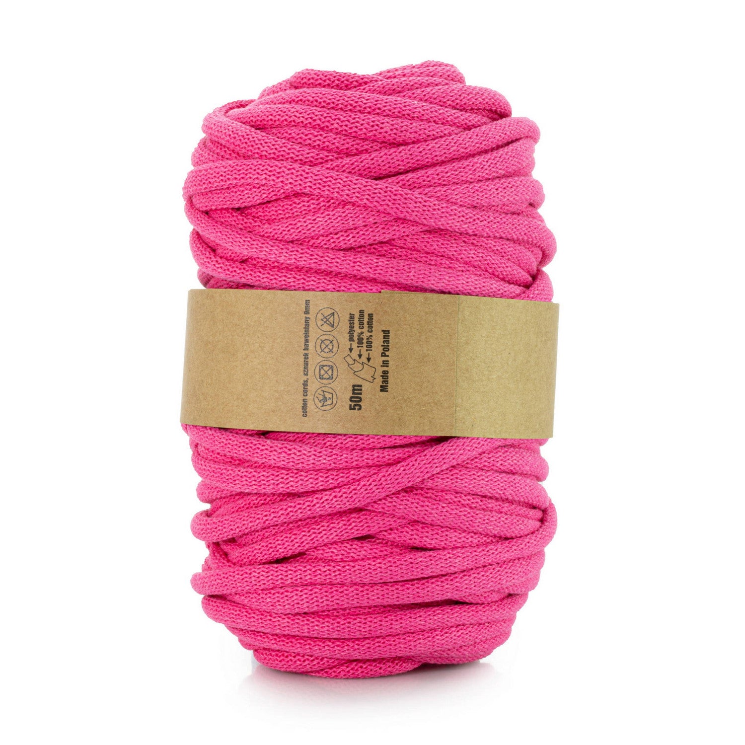 WAS, pamut zsinór, poliészter maggal, fonott, 9mm, 50m, fukszia