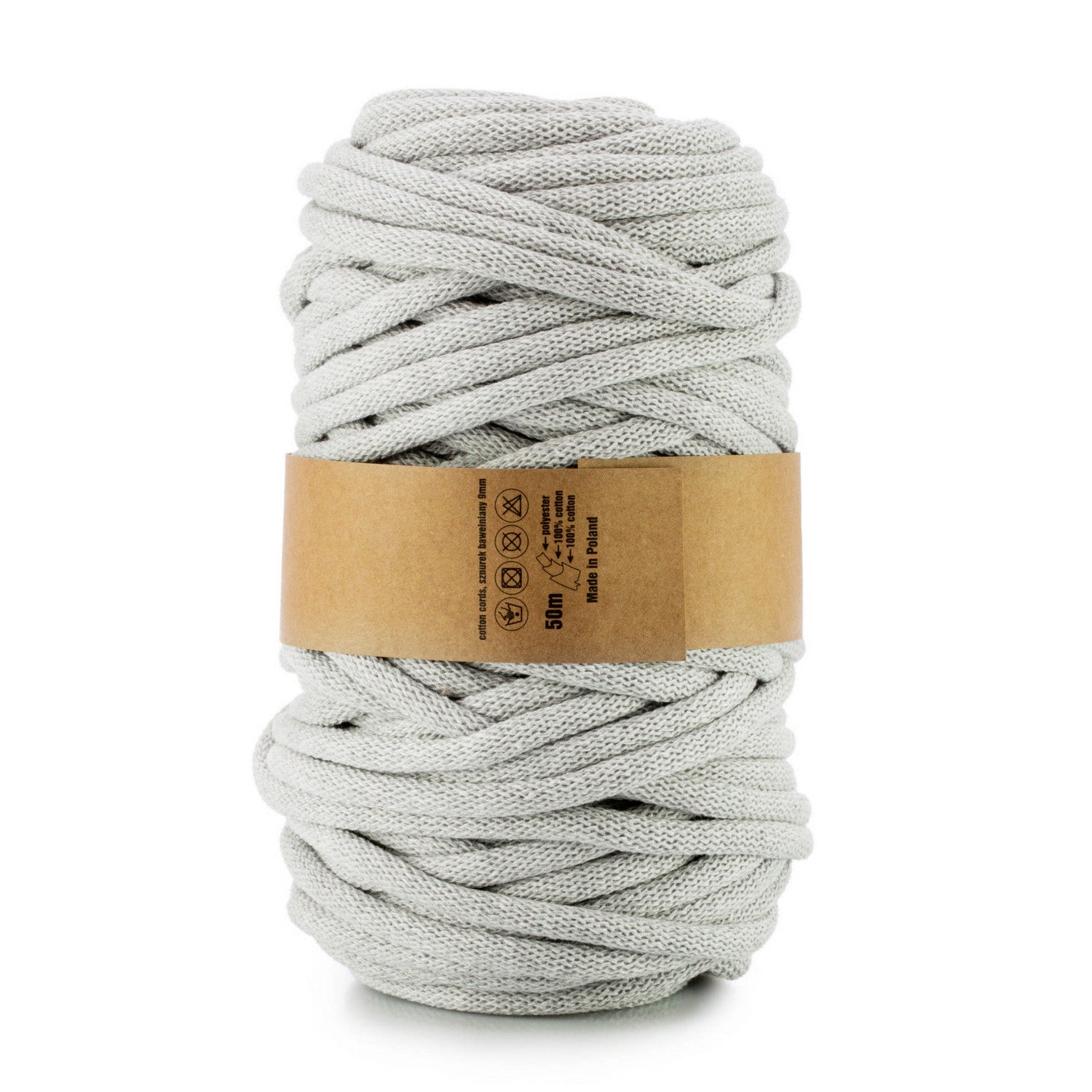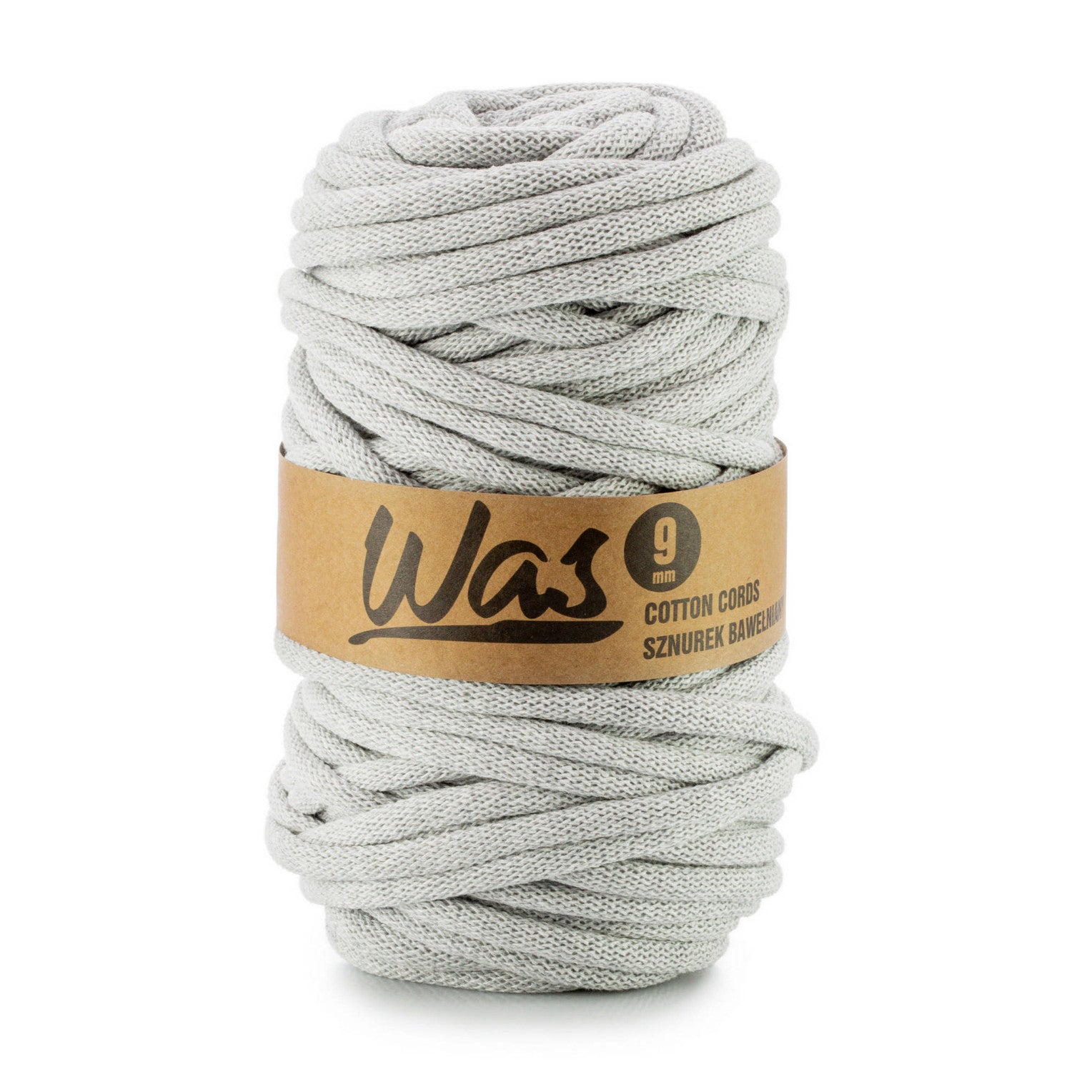 WAS, pamut zsinór poliészter maggal, fonott, 9mm, 50m, világosszürke