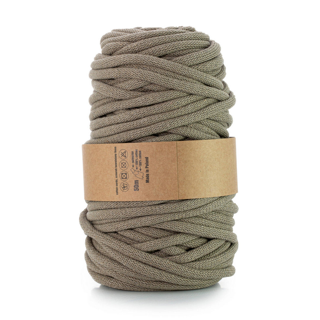WAS, pamut zsinór poliészter maggal, fonott, 9mm, 50m, sötét bézs színű