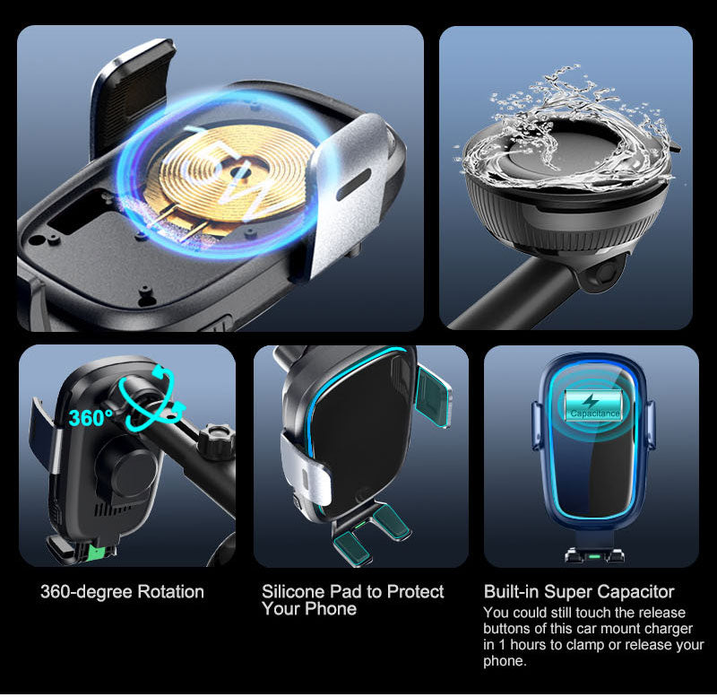 A nagyméretű kondenzátornak köszönhetően a karok az áramellátás lekapcsolása után is akár 1 órán át működnek, így akkor is könnyedén leveheti telefonját, ha az áramellátás lemerült. Az alumínium karok puha és érintésbarát szivaccsal vannak ellátva, amely megvédi okostelefonját a karcolásoktól, és így biztonságosan tartja készülékét.