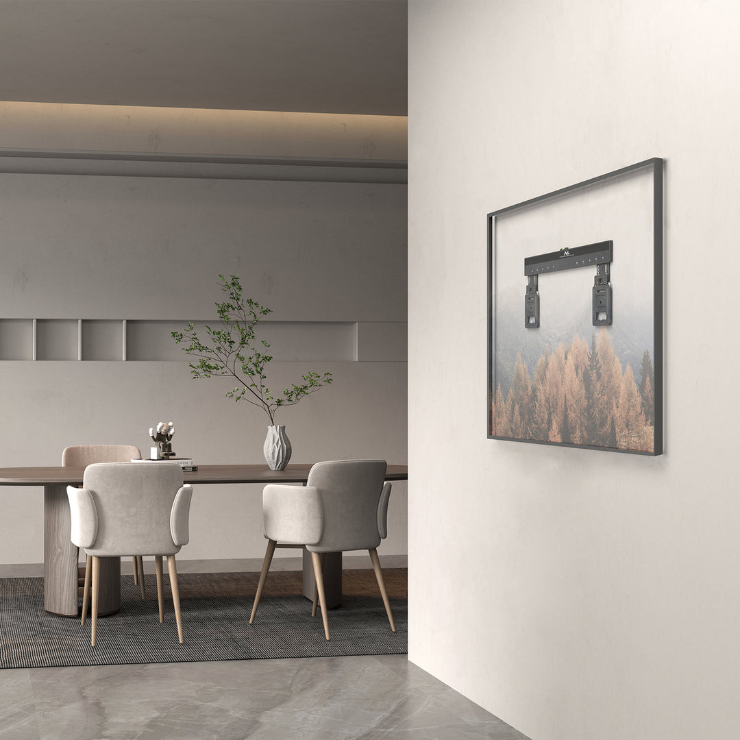 Az innovatív tartó kialakítása lehetővé teszi, hogy a TV-t úgy akassza a falra, mint egy festményt. Tökéletes megoldás egy modern szobába!
