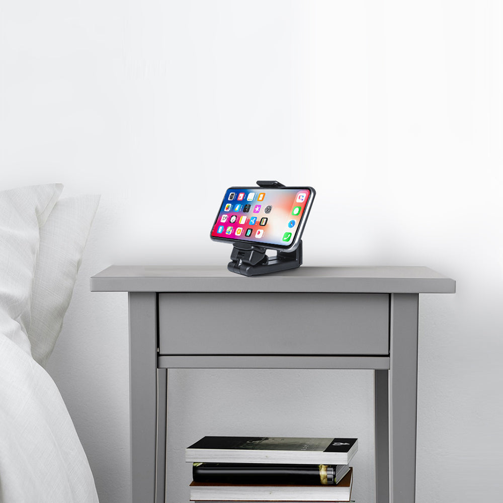 - Mobiltelefon-állványként is használható - ideális az asztalon/asztallapon való használathoz. az asztal szélére
