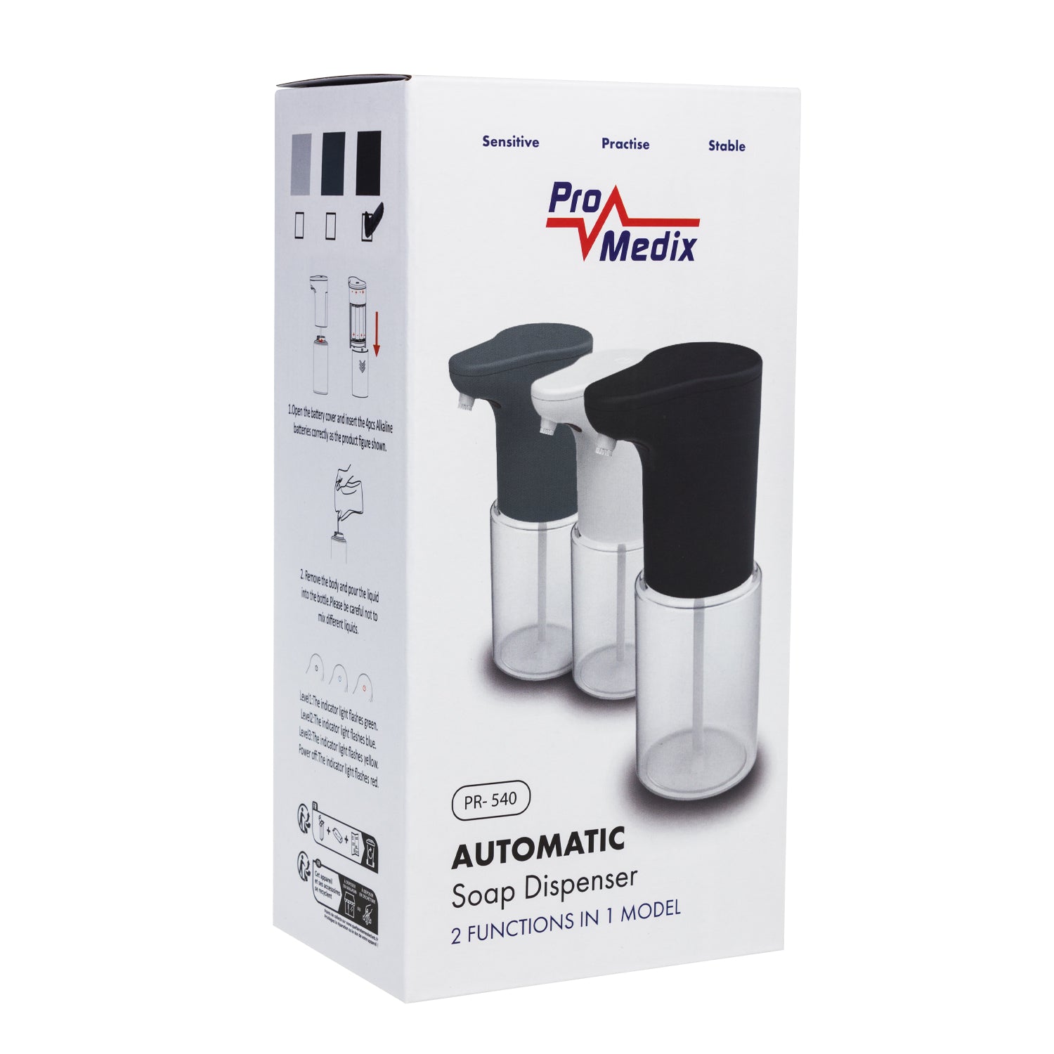 A Promedix PR-540 automata adagoló praktikus eszköz folyékony szappanok, folyékony és fertőtlenítő gélek, tusfürdők, samponok stb. adagolására. Kapacitása 300 ml, így ideális otthoni vagy nyilvános helyeken történő használatra. Négy AA elemmel működik, így kényelmet és egyszerű használatot biztosít.
