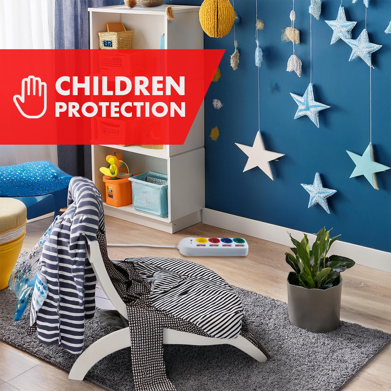 A szalag gyermekvédelemmel van ellátva, így biztonságos használatot biztosít olyan helyiségekben, ahol kicsik tartózkodnak.