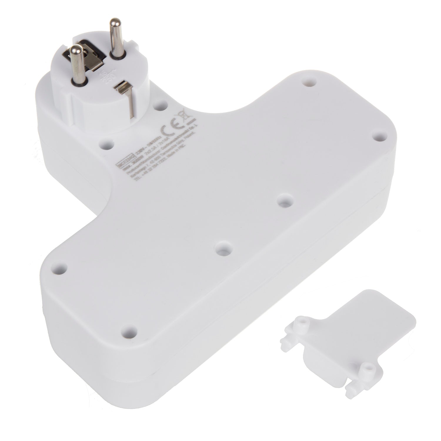 - Osztó négy aljzathoz - 2 lapos és 2 F-típusú (ún. német vagy schuko), pl. Németországban használatos