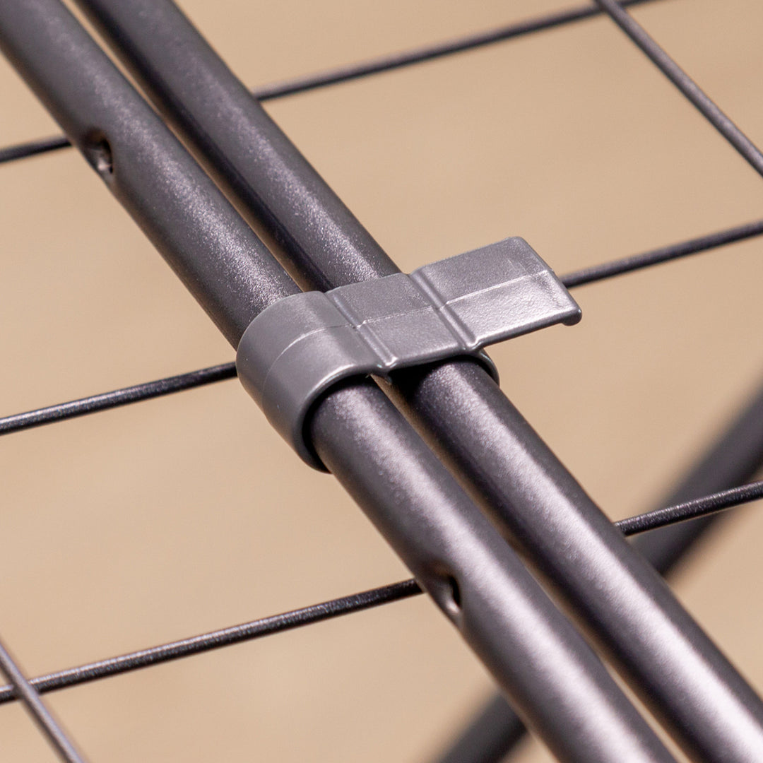 A X-alakú összecsukható lábak rendkívül egyszerűvé teszik a szárító kibontását. Egy speciális reteszelő mechanizmus megakadályozza, hogy véletlenül kibontakozzon. Szárnyas zárral is fel van szerelve. A robusztus acélkeret biztosítja a tartósságot és a stabilitást. A felhasználó kényelmét szem előtt tartva tervezték, másodpercek alatt kibontja és ugyanilyen könnyen összecsukható.