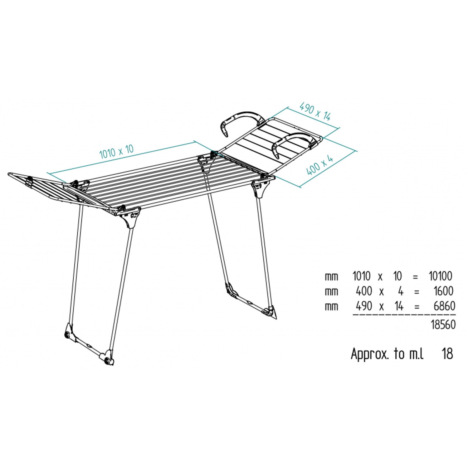 A ruhaszárító egy további akasztóval is fel van szerelve a kisebb méretű szennyes ruhákhoz. Mozgathatóságát és stabilitását a szárító lábaiba zárt görgők növelik.
