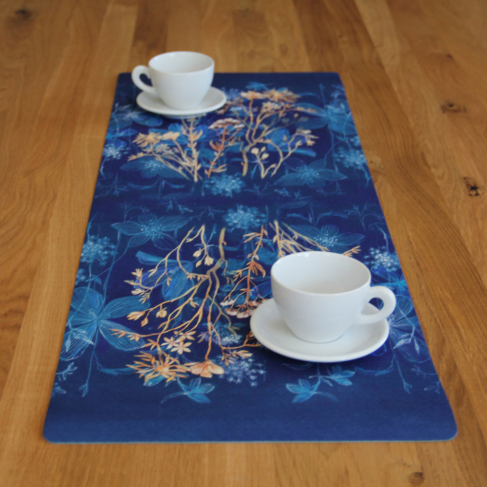 Bertoni asztali futó, filc, 95x33cm, Midnight print minta, nemez, éjfekete mintás