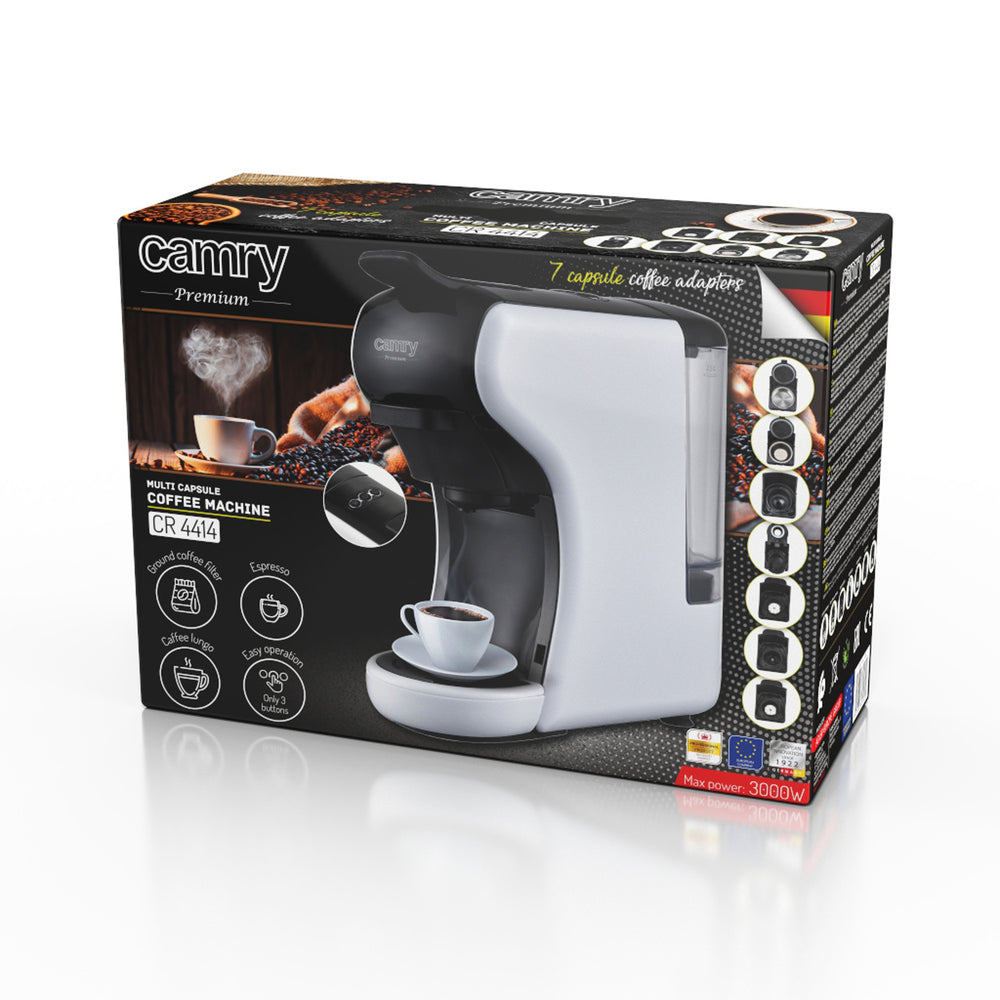 Ha Ön is azok közé tartozik, akik nem tudják elképzelni a reggelt feketekávé nélkül, vagy a délutánt aromás kapucsínó nélkül, akkor a CAMRY CR 4414 többkapszulás, többnyomású eszpresszógép az Ön számára készült termék. Kevés helyet foglal a pulton, elegánsan néz ki, és lehetővé teszi a legnépszerűbb kávék elkészítését.