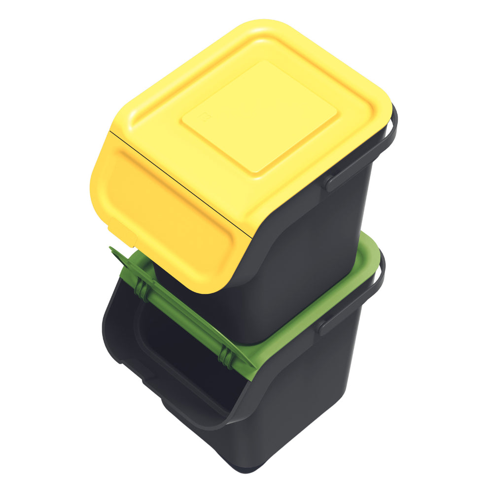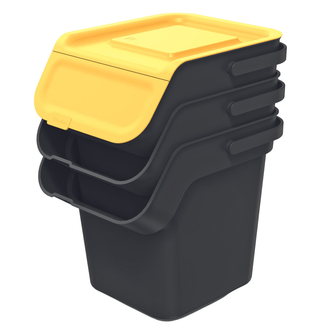 Keden hulladékgyűjtő szett, 3x20 literes, fekete, Stackbox, hulladék szétválasztáshoz