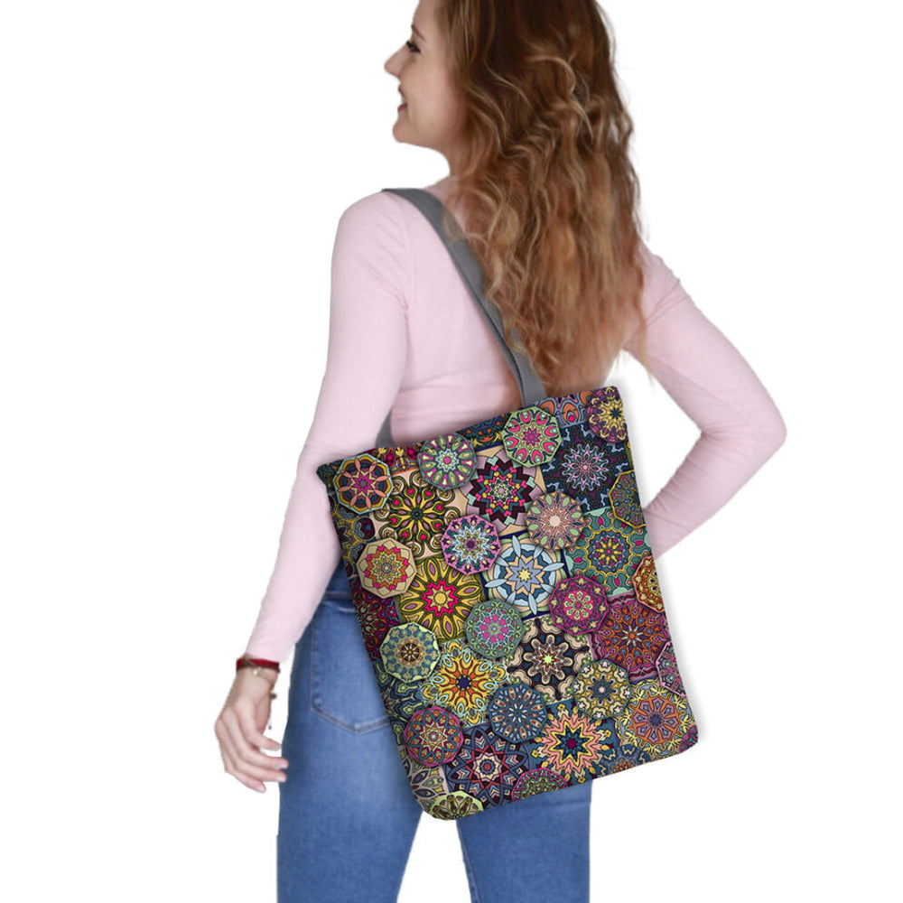 Vászon válltáska, cipzárral záródó, méretei 36x40 cm, Serenity nyomtatott mintával
