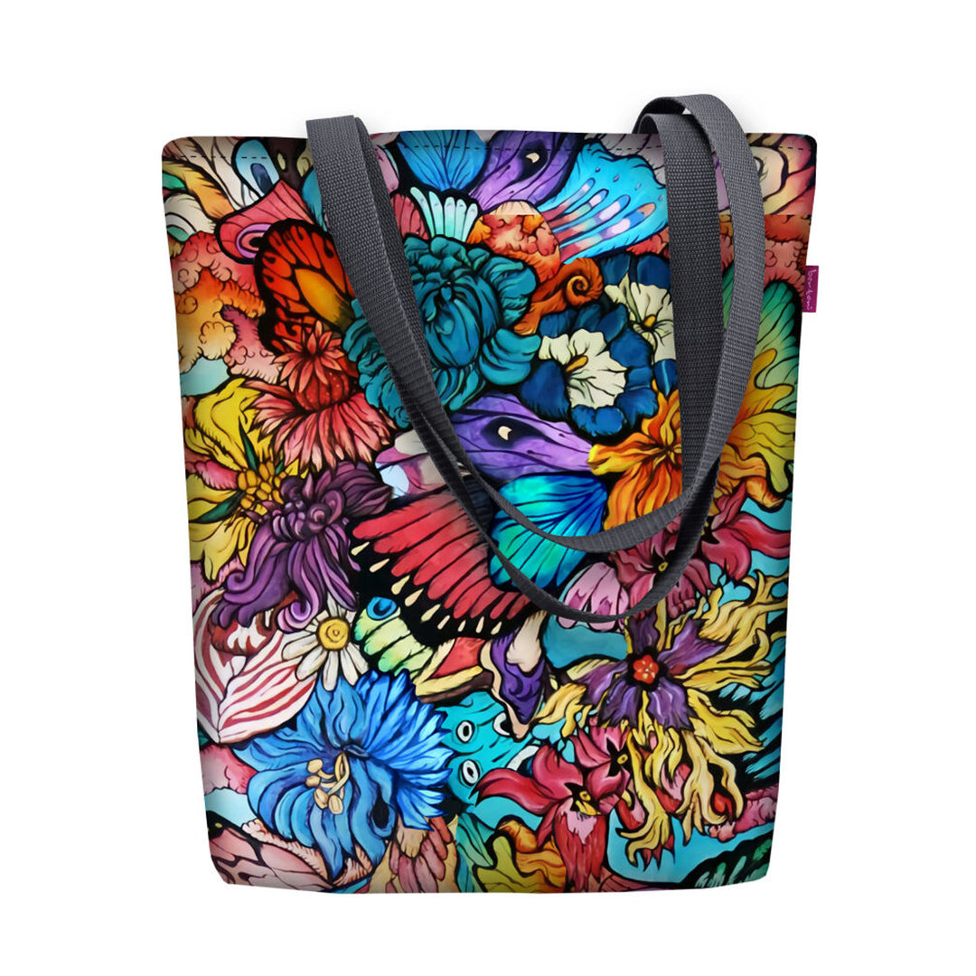 Vászon válltáska, cipzárral záródó, méretei 36x40 cm, kert mintás