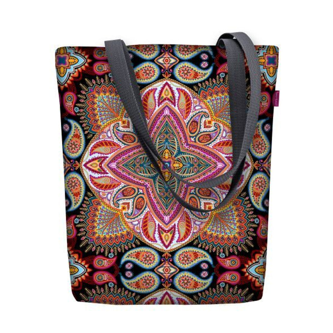 Vászon válltáska, cipzáras záródás, méretek 36x40 cm, Hippi nyomtatott mintázat
