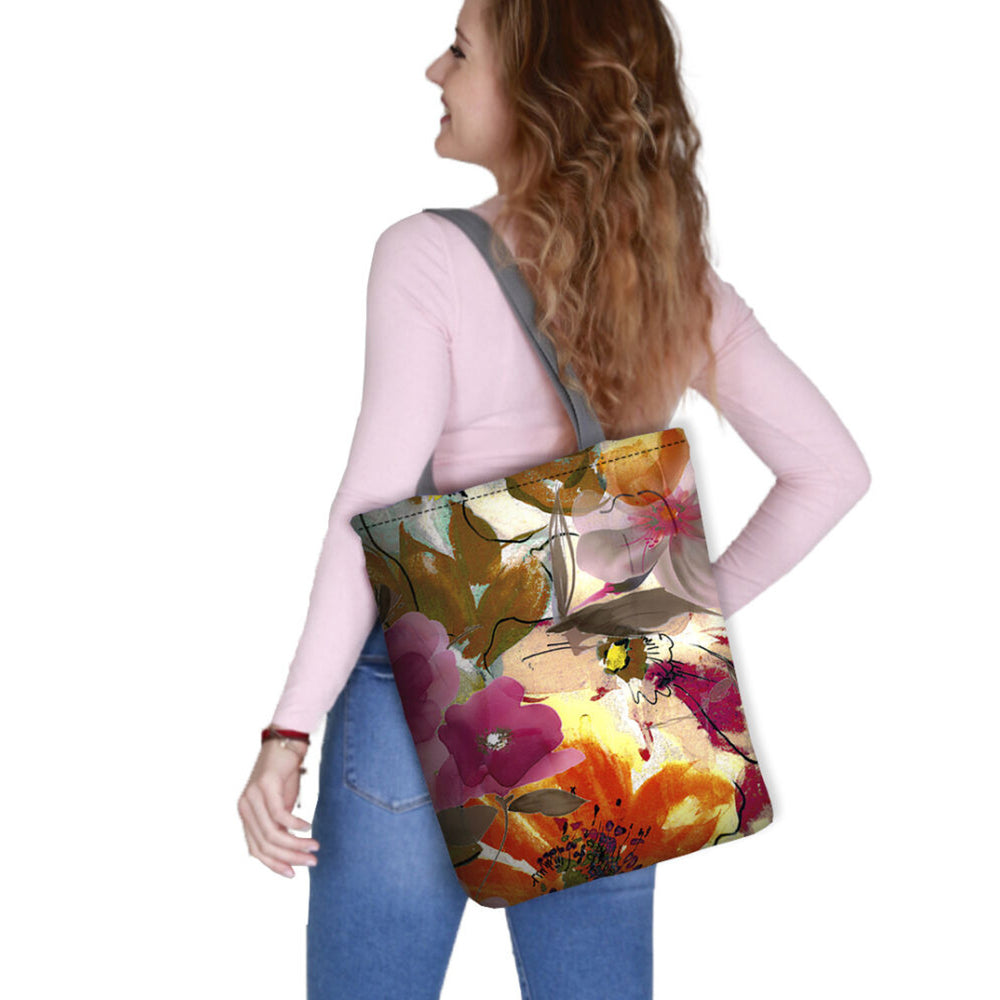 Vászon válltáska, cipzárral záródó, méretei 36x40 cm, Fiori nyomtatott mintával