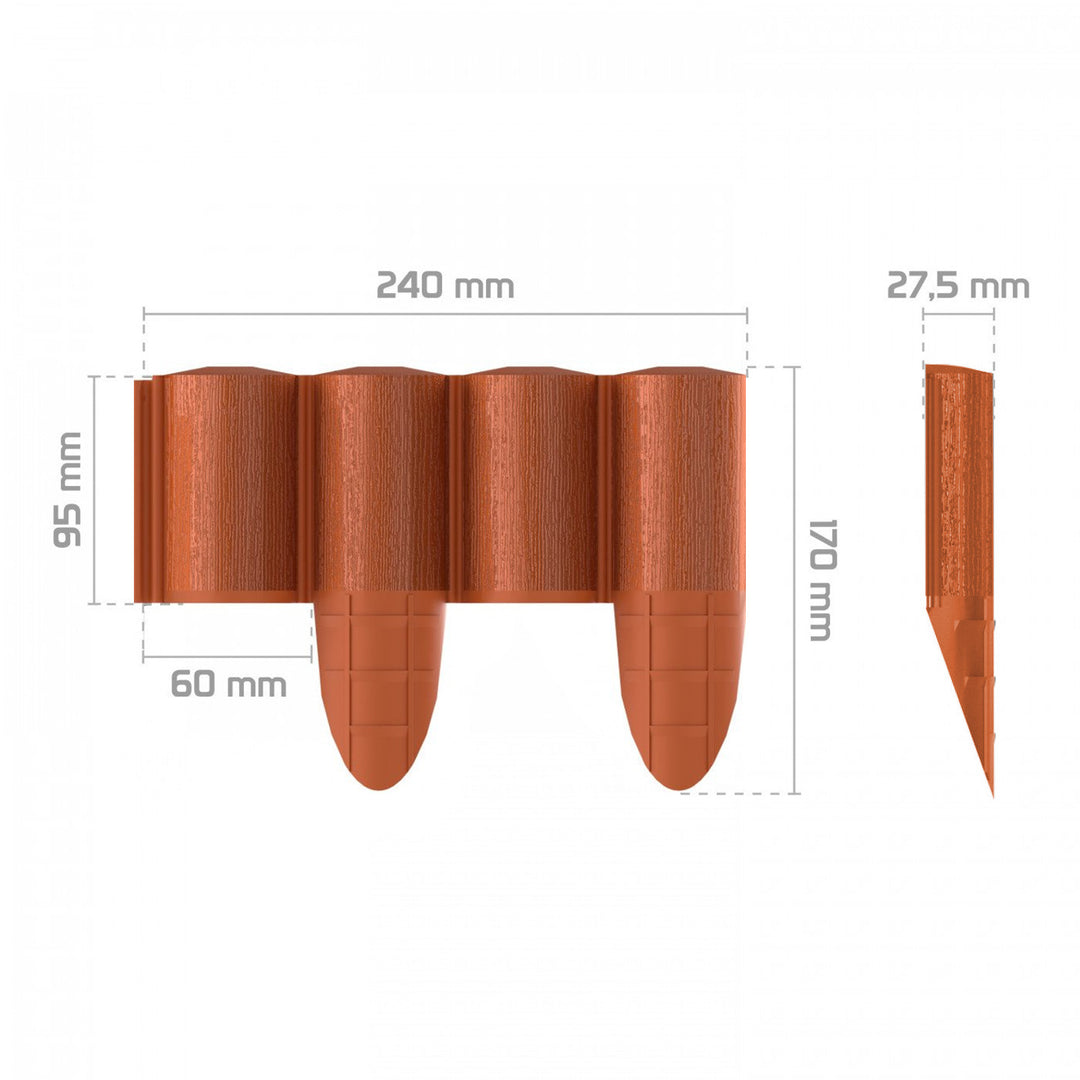 A szegély A kert dekoratív szegélye 8 szegély 85 mm x 2,4 m barna műanyag
