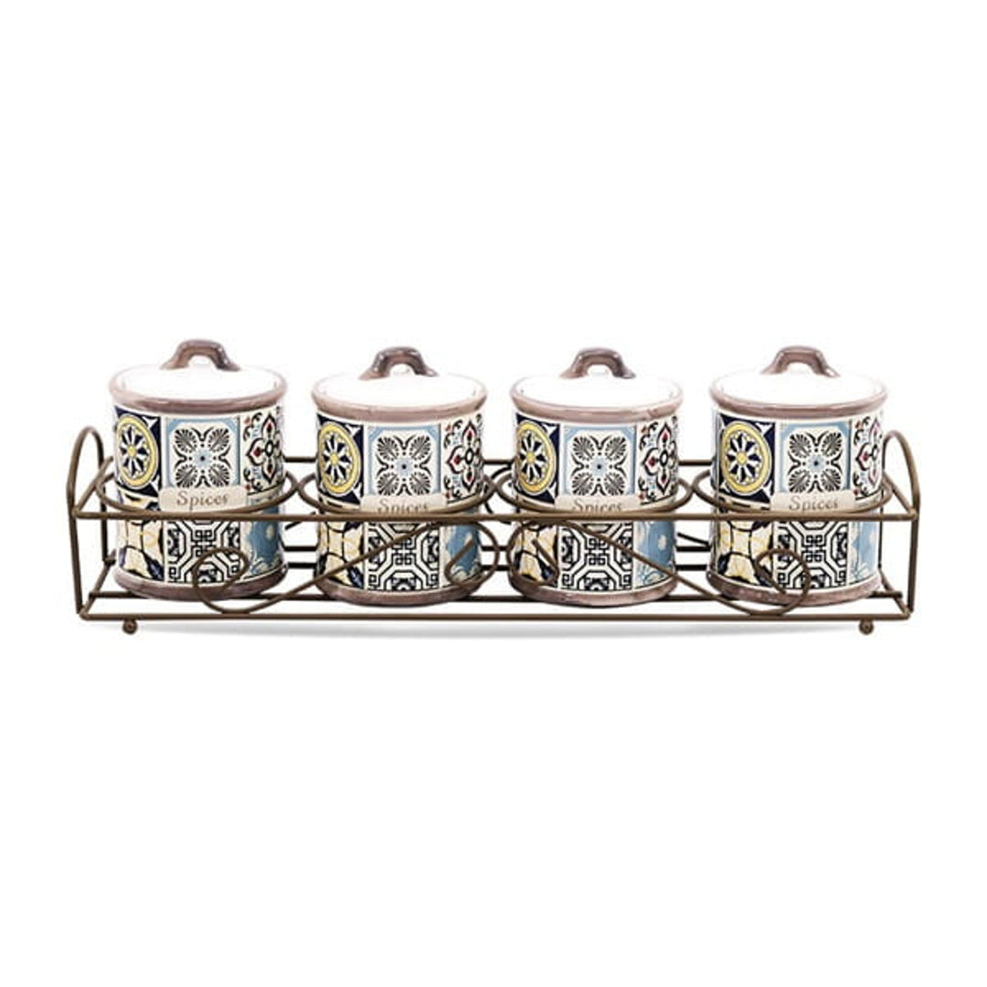 Holiday in Porto Maestro kerámia edénykészlet, 5 darab, 200ml űrtartalommal, ideális fűszerekhez, fém állvánnyal, MR-20005-04CS