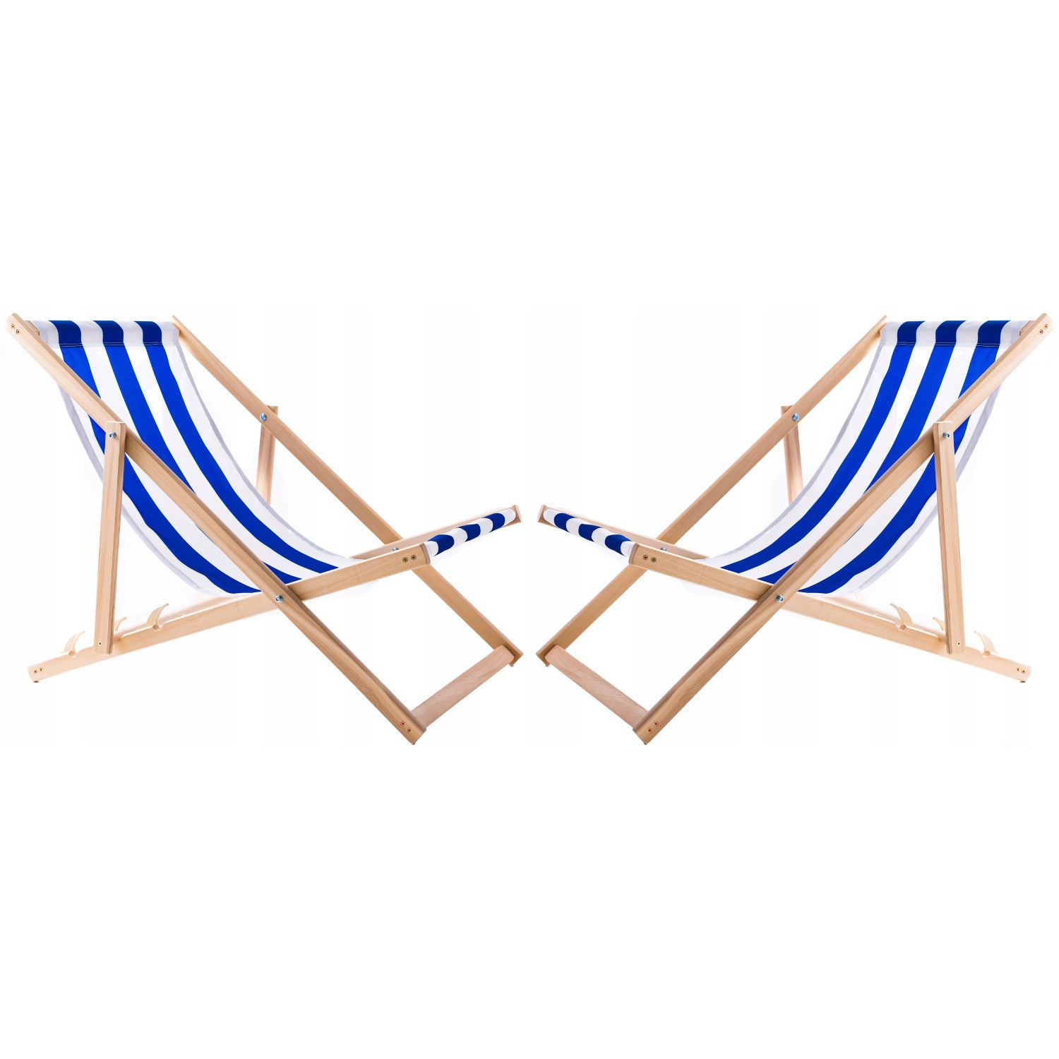 2 db kék csíkos strandfotel + fa dohányzóasztal Woodok