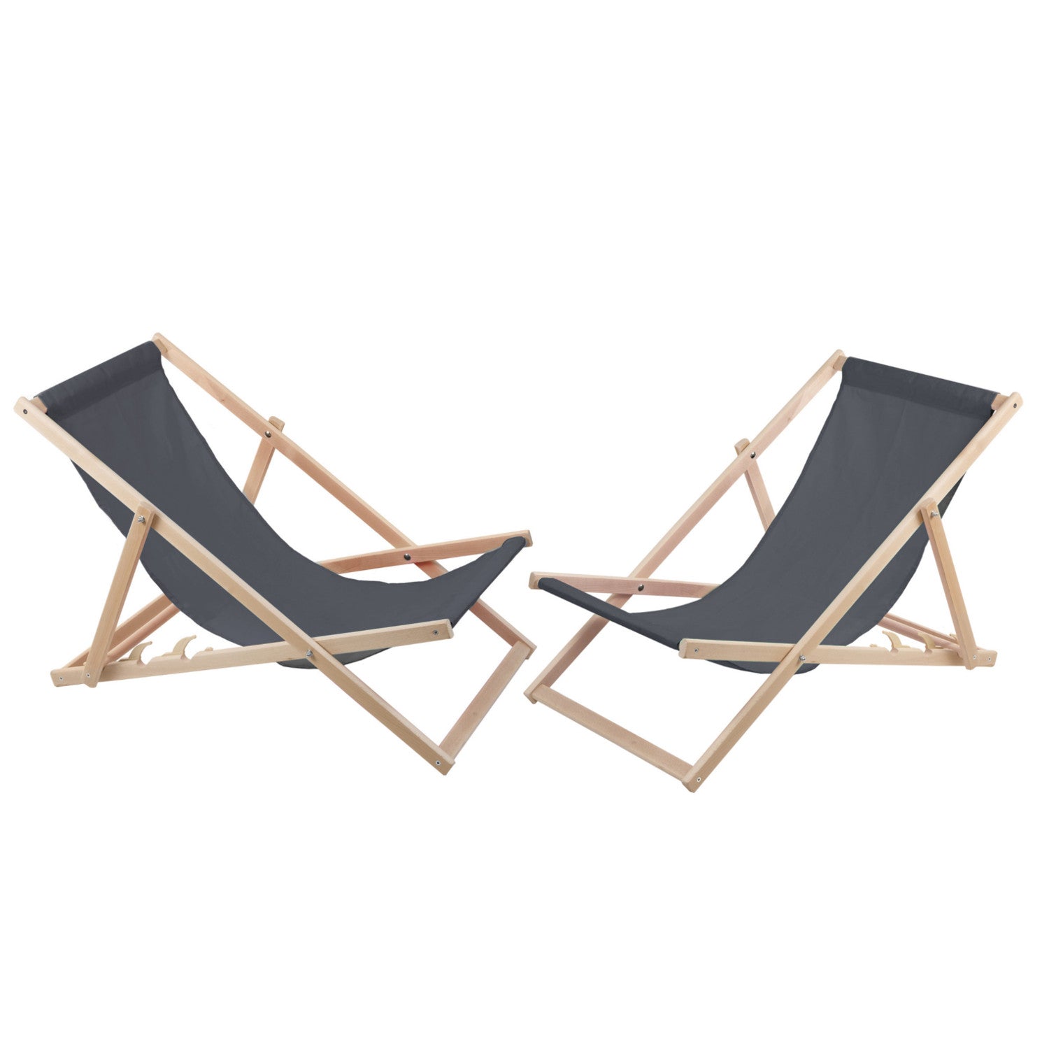 2 kényelmes szürke fa nyugágy, ideális a strandra, erkélyre, teraszra.