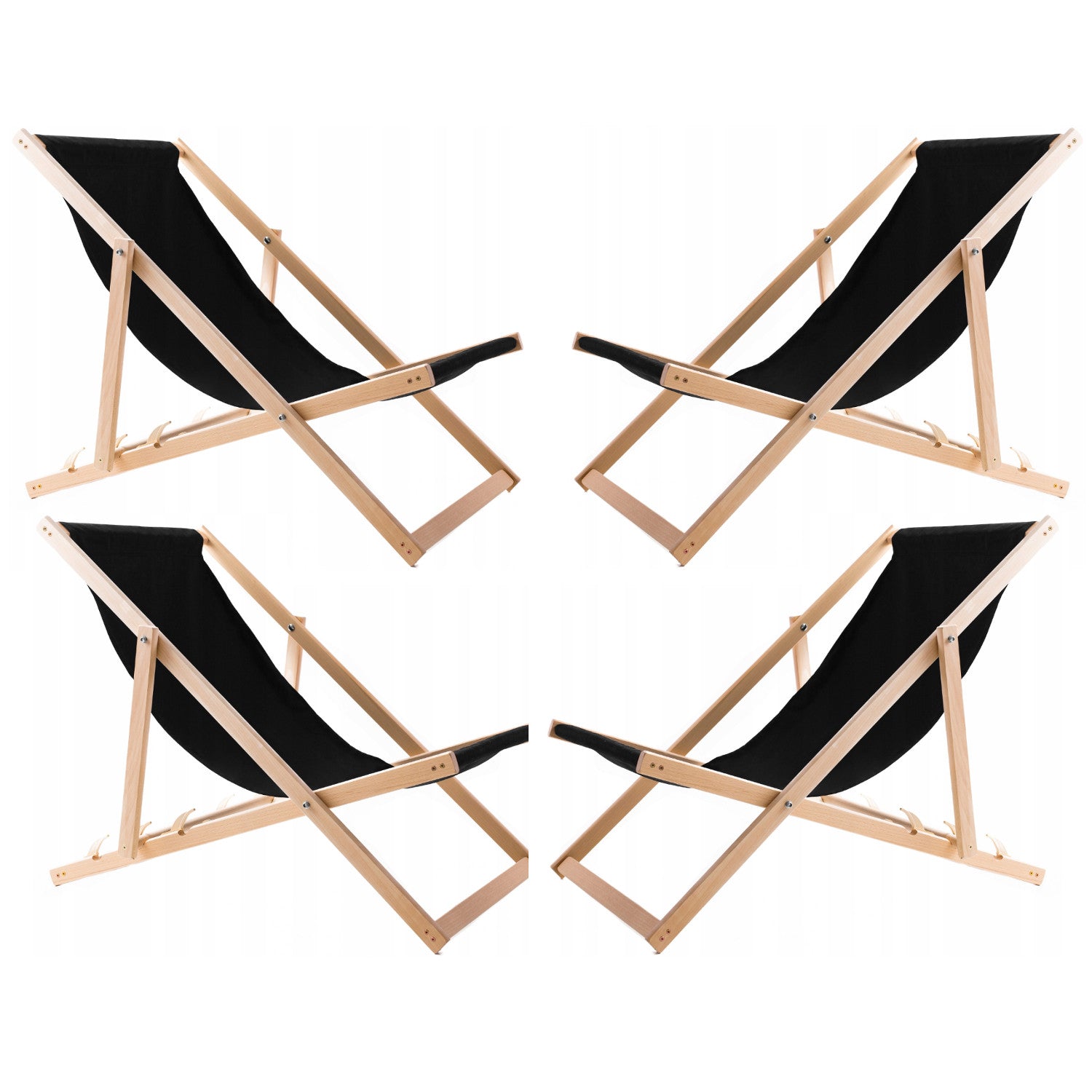 4 db kényelmes fa nyugágy, fekete, ideális strandra, balkonra, teraszra, teraszra
