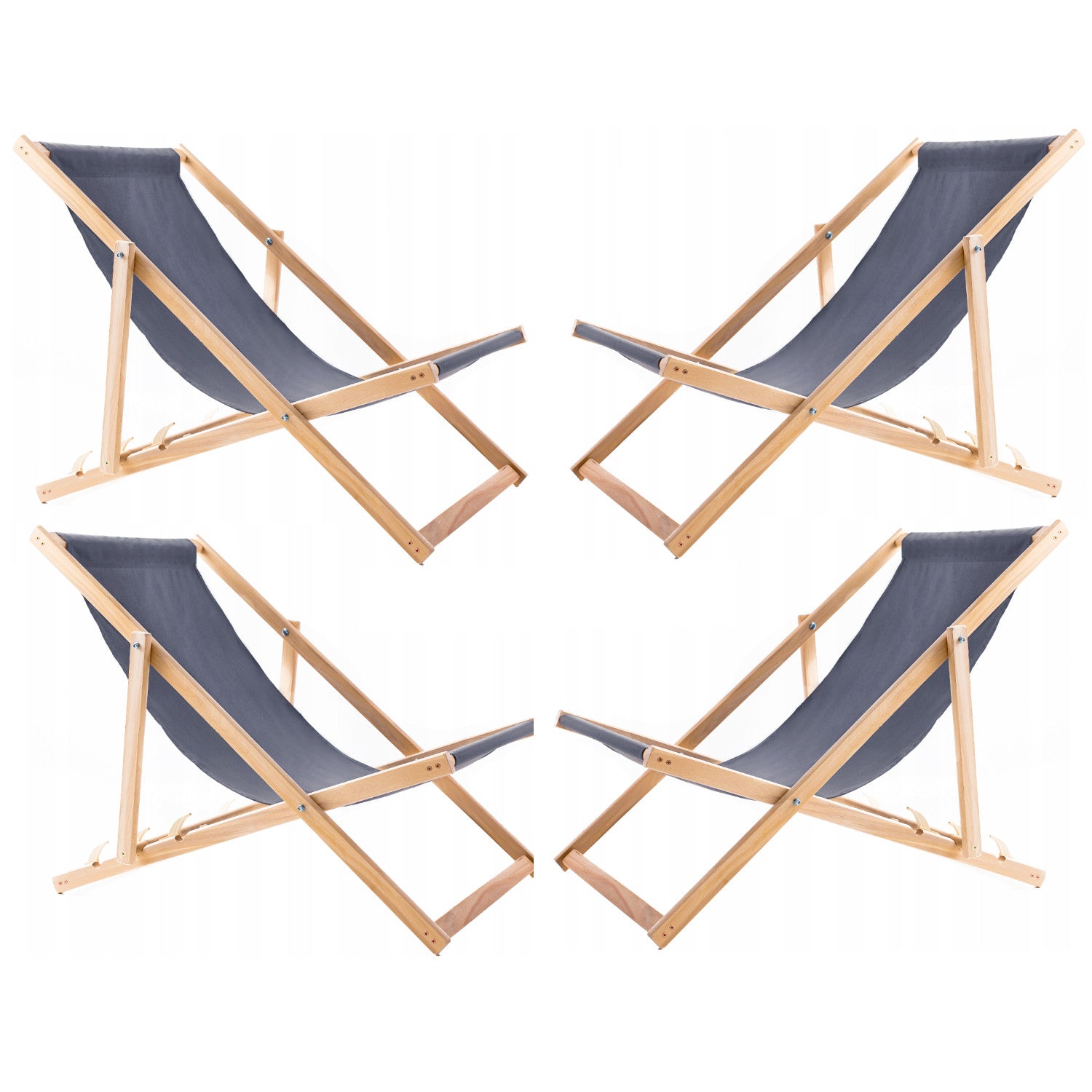 4 db kényelmes fa nyugágy, szürke, ideális a strandra, erkélyre, teraszra