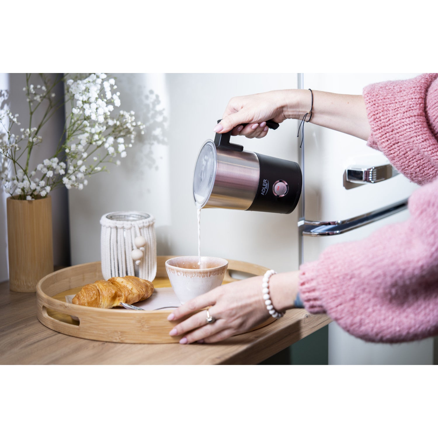 Az ADLER AD 4497 tejhabosítónak minden kávérajongó konyhájában ott a helye: egy olyan készülék, amellyel a legjobb kávézók habjával készítheti el saját kávéját. A tej hozzáadása feldobja egy kis feketekávé ízét, de az ital díszítése piedesztálra emeli, és minden vendéget elragadtat, akinek házi készítésű cappuccinót vagy latte-t szolgálnak fel. Ez egyben az ital kedvelt hőmérsékletének megőrzését is szolgálja.