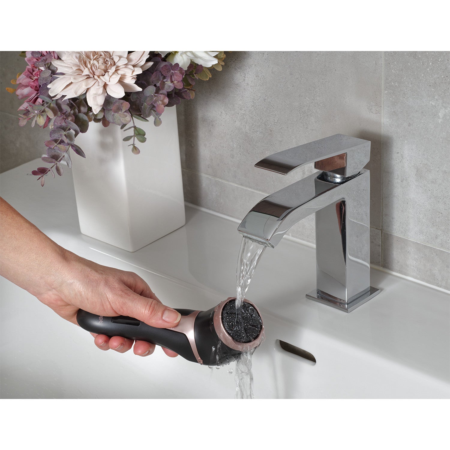 A legjobb eredmény érdekében a reszelő használata előtt merítse lábát meleg vízbe, hogy a bőr felpuhuljon. Ezután törölje szárazra egy törölközővel. Válassza ki a kívánt sebességet, és óvatosan mozgassa a forgó fejet a lábfej mentén. Rendszeres használat mellett sarka és lába sima és puha tapintású lesz.