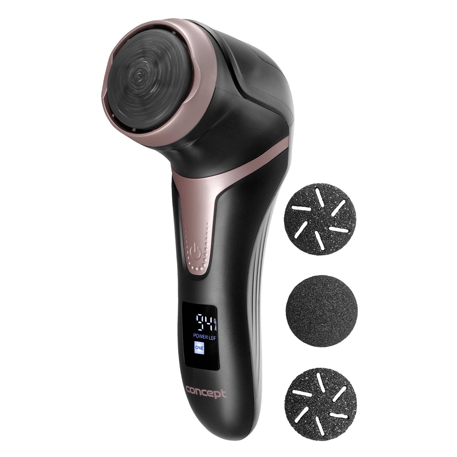 A Concept PN3020 elektromos lábápoló készüléket egy beépített 1200 mAh-s Li-Ion újratölthető akkumulátor működteti, így egy feltöltéssel akár 100 percig is bírja. Automatikus kikapcsolási funkcióval van ellátva 2 perc használat után. Töltése a mellékelt USB kábelen keresztül történik.LCD KIJELZÉS