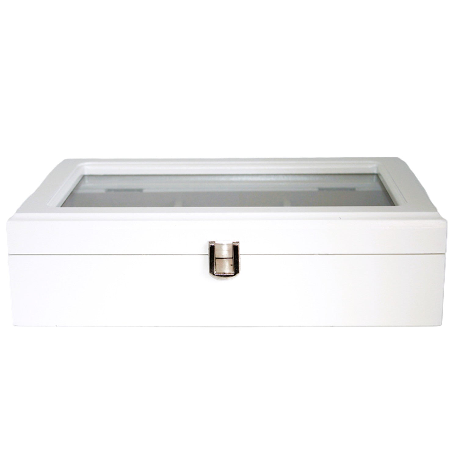 Ékszeres doboz, fa, fehér, szervező, rekeszek, üvegfedél, Queen Isabel