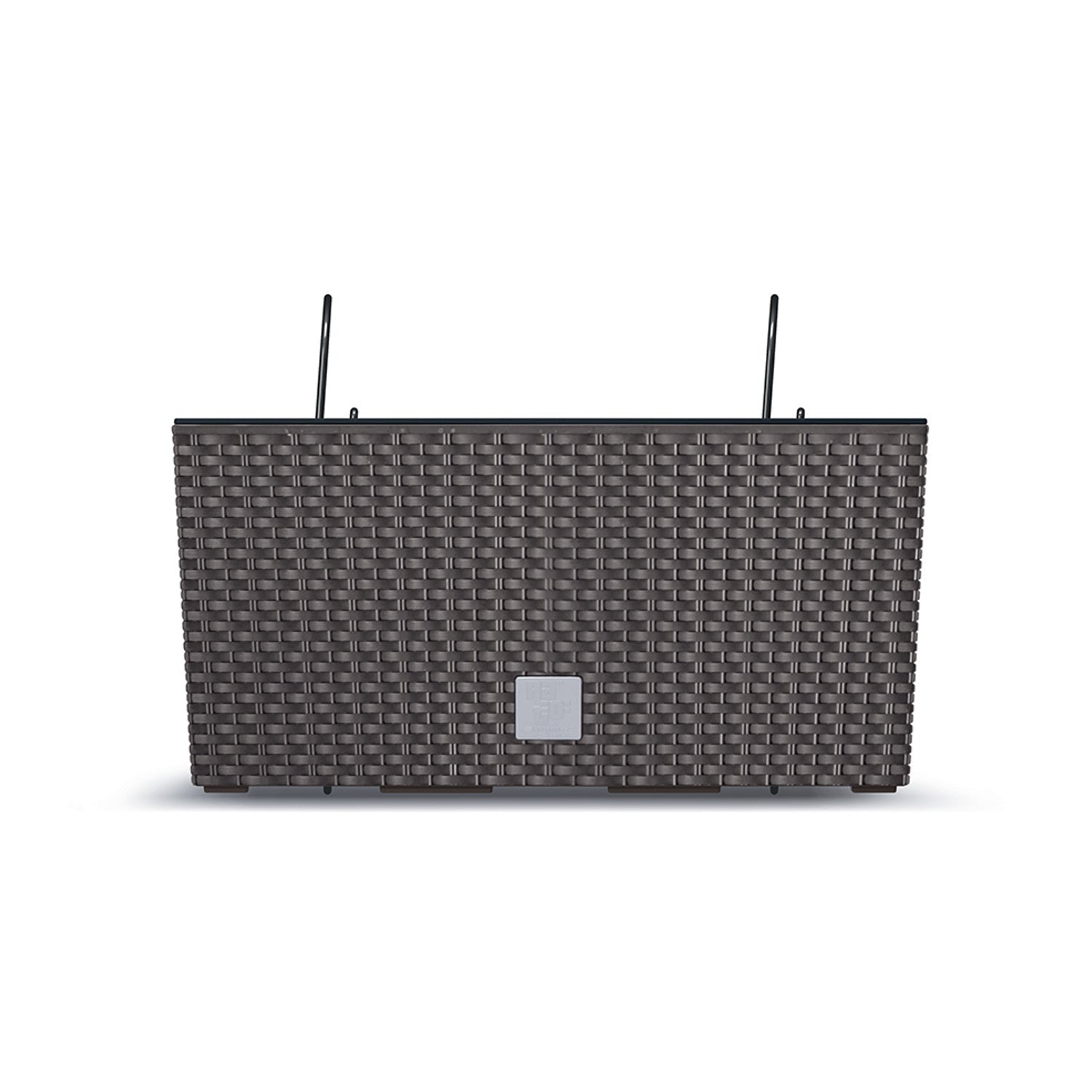 Egyszerű, elegáns formákkal és a természetes rattanfonatot hűen utánzó textúrával rendelkező balkonláda. Erős hangsúlyt fog jelenteni az erkélytér elrendezésekor. Kampókkal ellátva, amelyek lehetővé teszik a korlátra való felakasztását. A betéttel együtt jár.