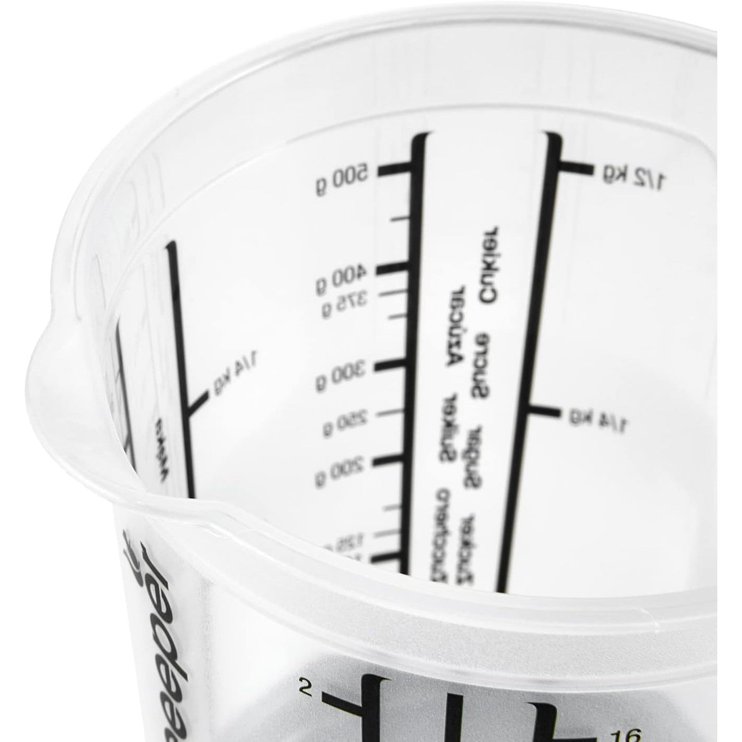 - Könnyű főzést és sütést biztosít: Skála folyadékok, cukor, liszt, csészék (US) és unciák (US)