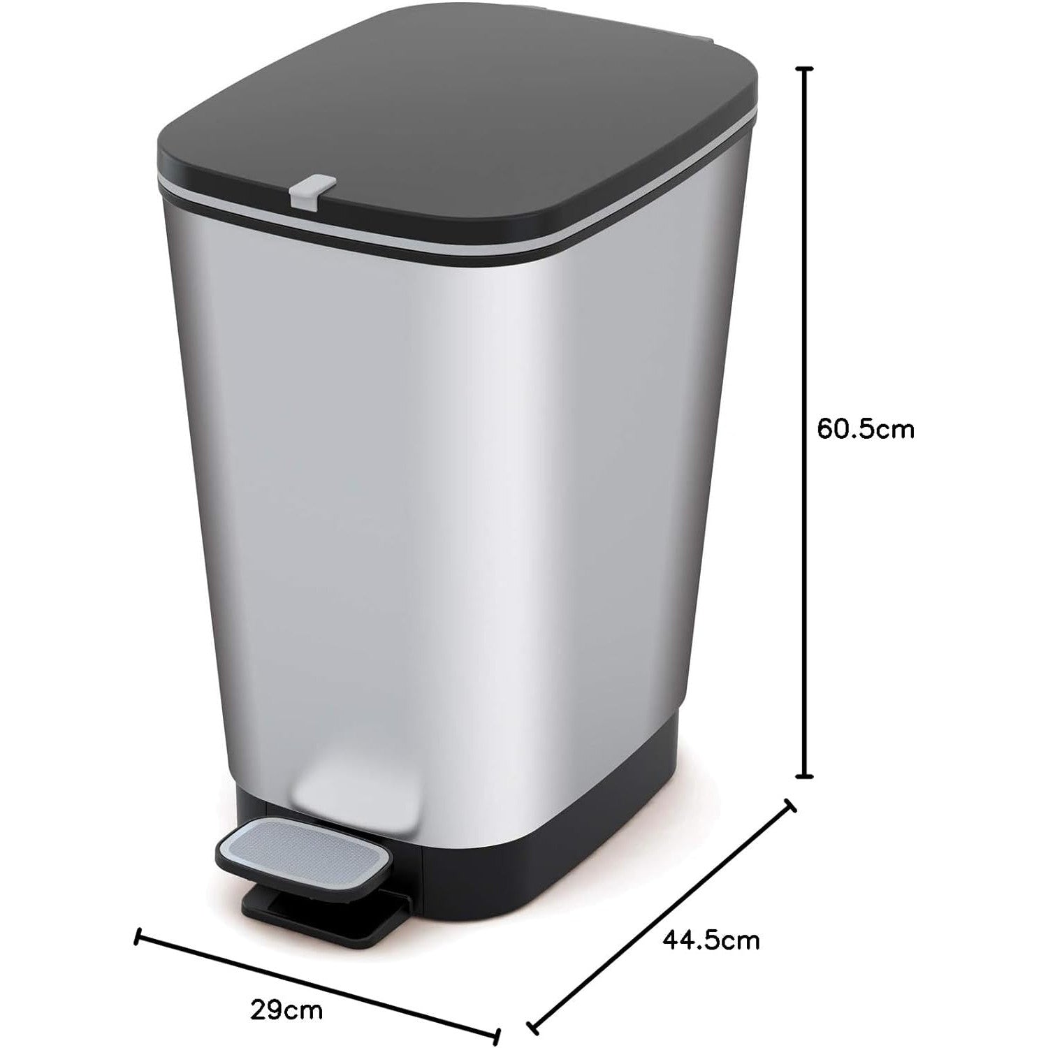 Robusztus és elegáns pedálos szemeteskosár 50 literes űrtartalommal. Modern kialakításának köszönhetően a kosár tökéletesen illeszkedik bármilyen belső térbe.