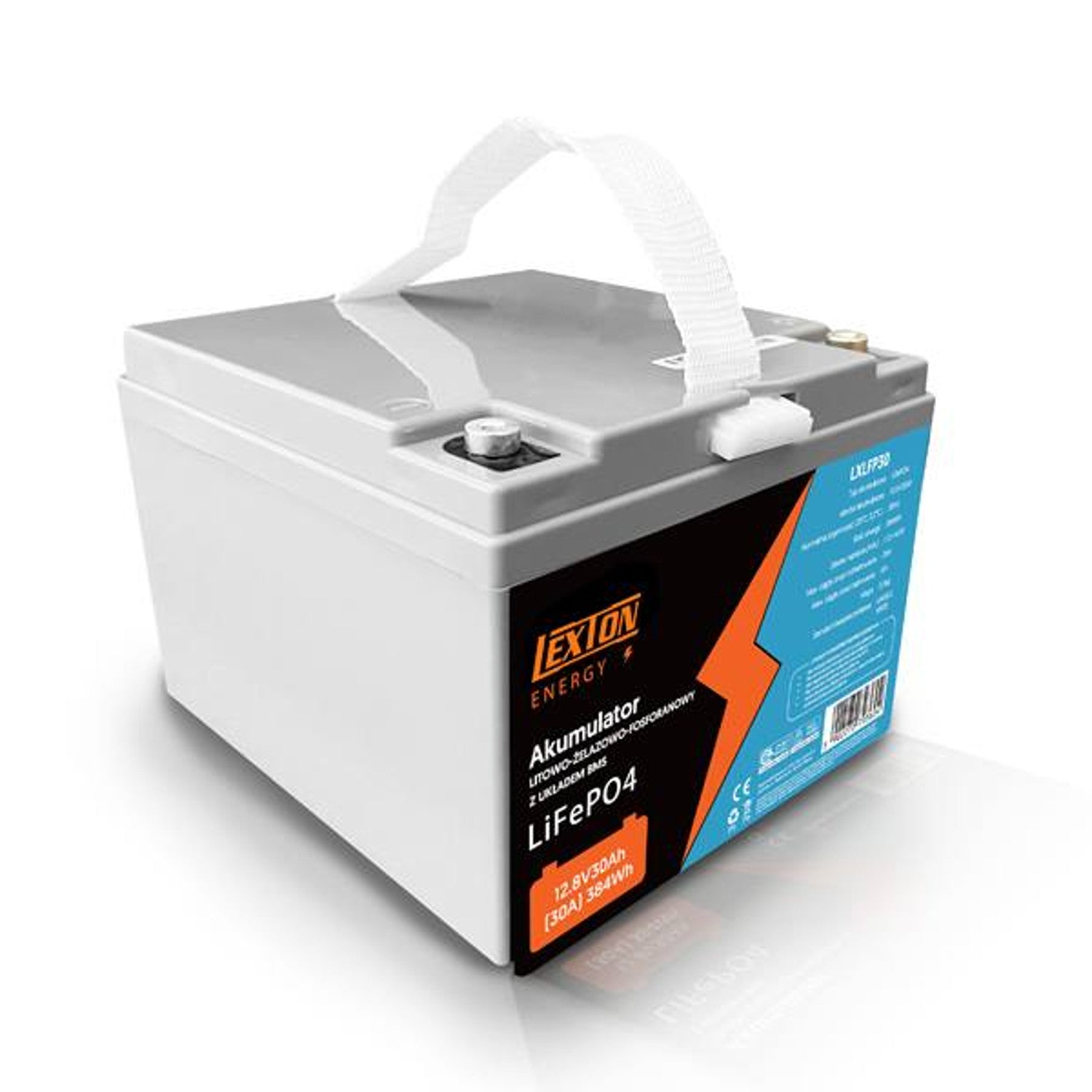 LiFePo4 Lexton lítium-vas-foszfát akkumulátor, BMS, 12.8V, 30Ah, LXLFP30 + LTC Energy LiFePO4 akkumulátor töltővel