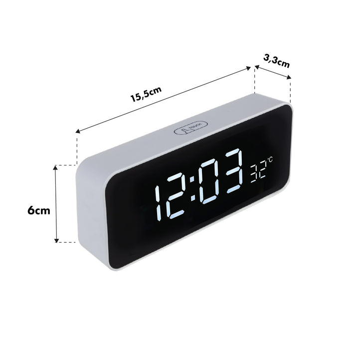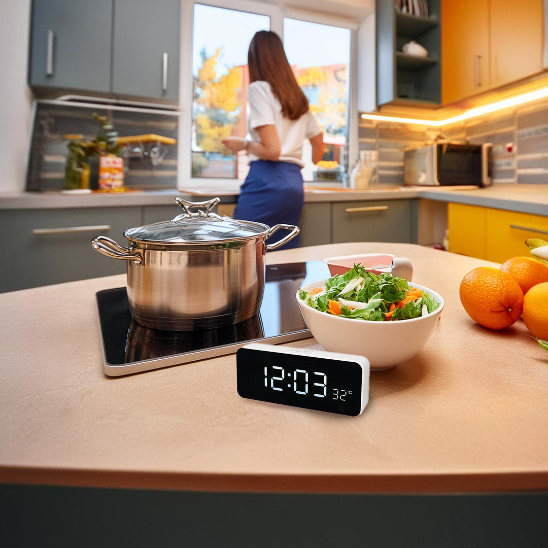 A GreenBlue GB397 egy modern készülék riasztóval és belső hőmérsékletmérő funkcióval. Az óra nagy, könnyen olvasható képernyővel rendelkezik, amely tökéletesen illeszkedik bármilyen belső térbe, legyen az klasszikus vagy modern stílusban berendezett. A nagyméretű számjegyek még távolról is biztosítják az olvashatóságot, a beépített érzékelő pedig lehetővé teszi a környezeti hőmérséklet megjelenítését.