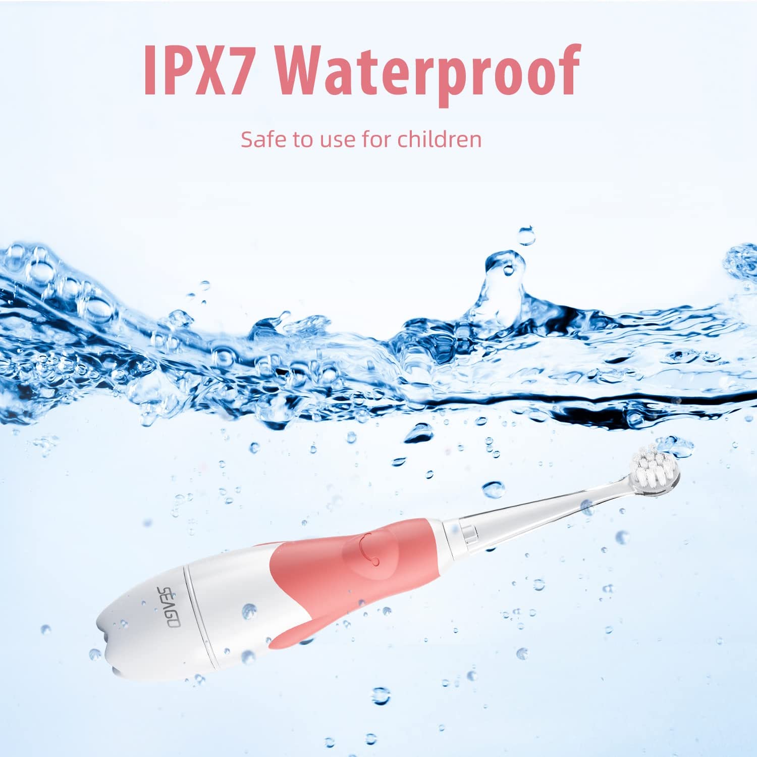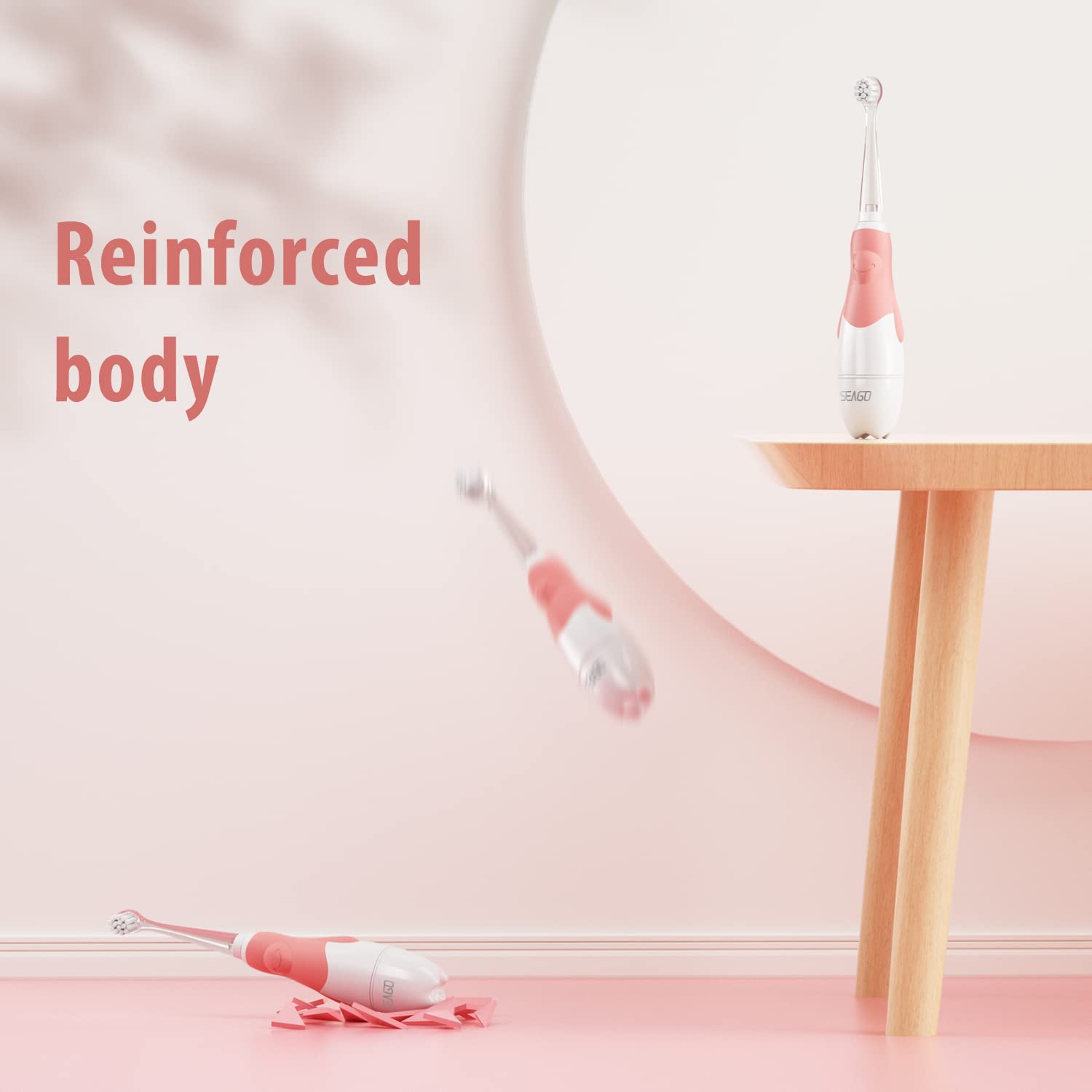 SEAGO gyermek szonikus fogkefe, rózsaszín, 1xAA 1,5V (nem tartozék), 4 hegy, SG-513 rózsaszín + pótfogkefe készlet SG-513, SG-977 SEAGO, 4 db, átlátszó színű, SG-513 utántöltő fogkefe