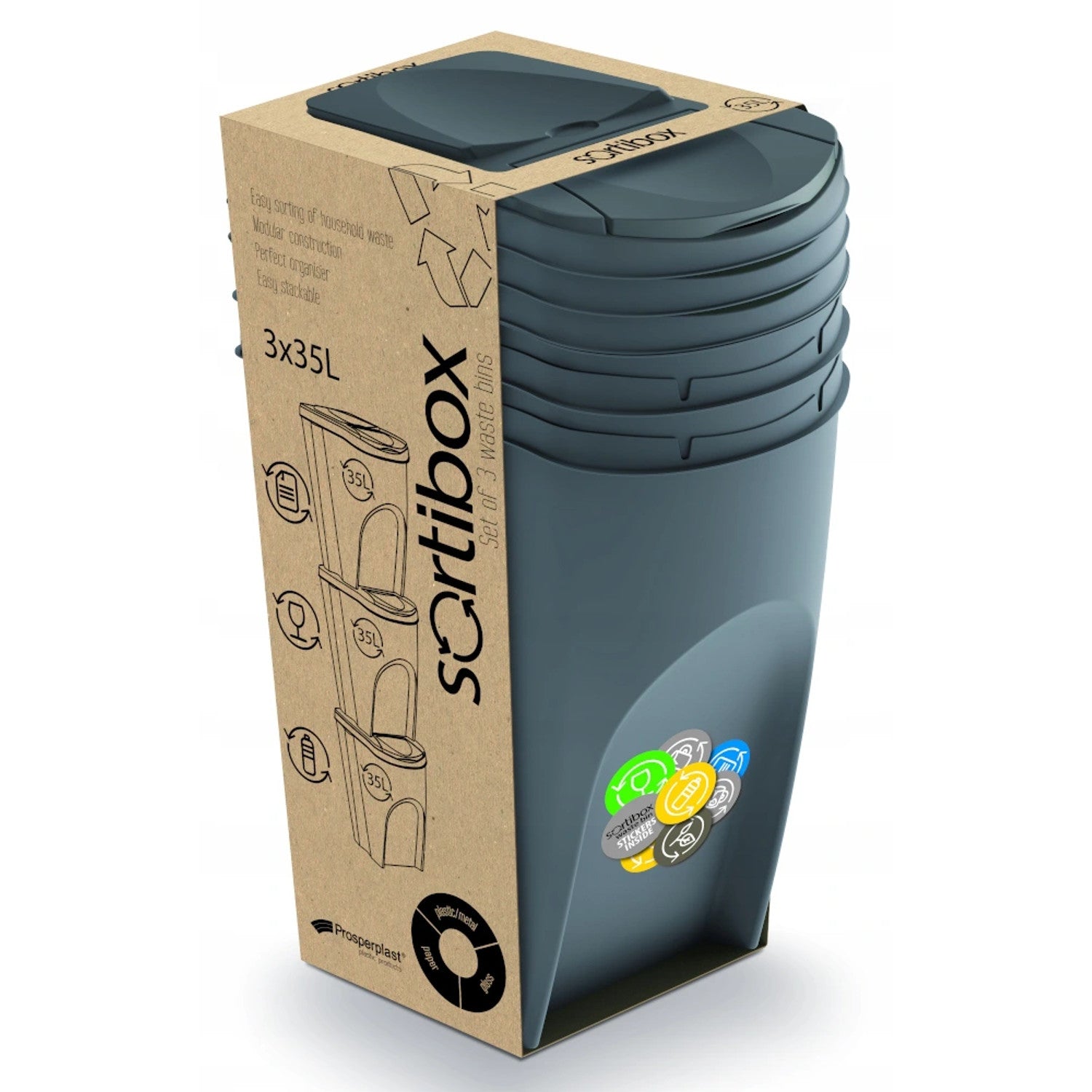 Sortibox hulladékválogató készlet 3x35L szürke
