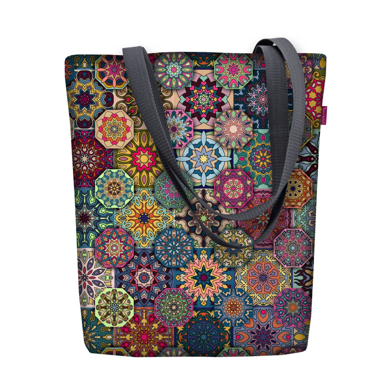 Vászon válltáska, cipzáras záródás, méretek: 36x40 cm, Valencia nyomtatott mintázat