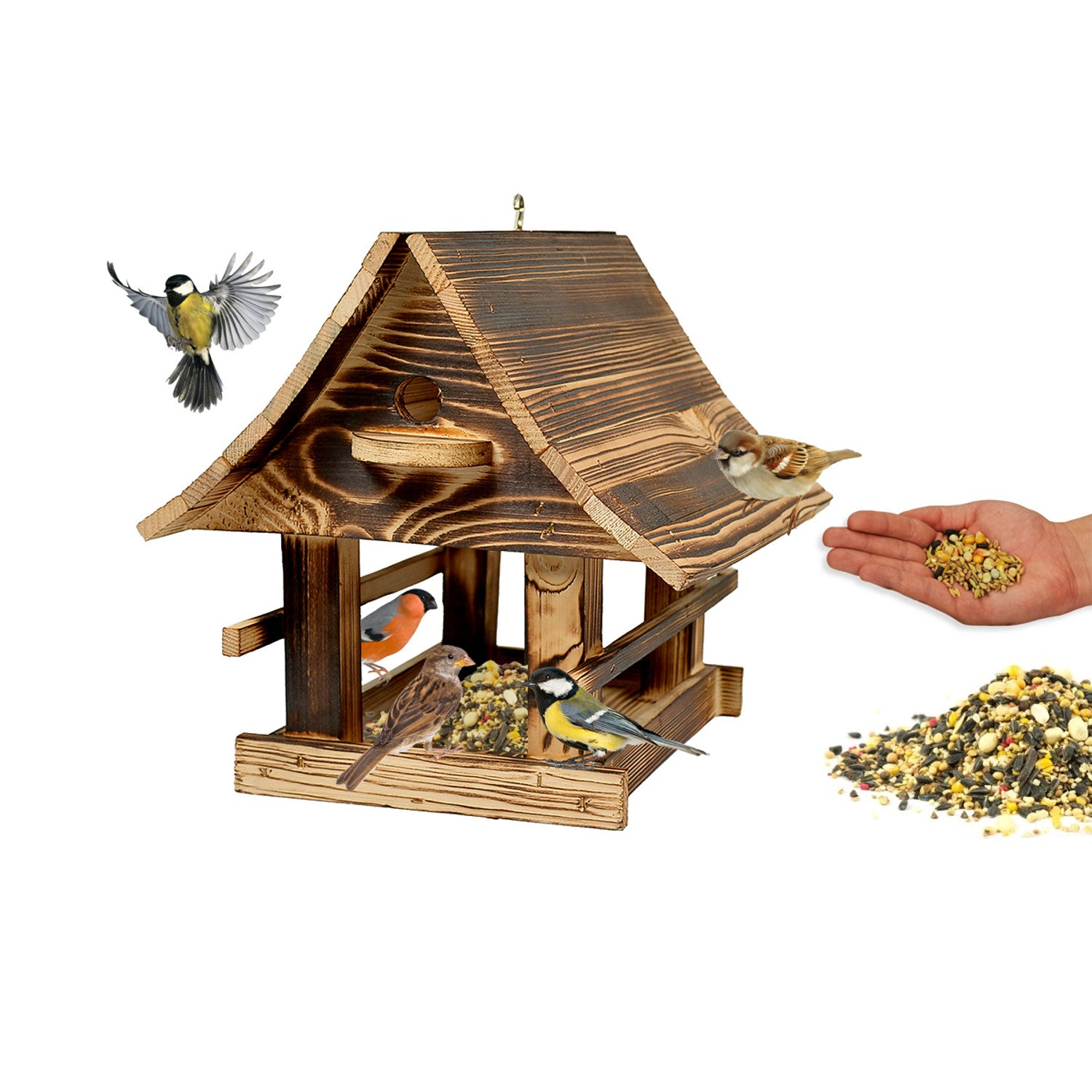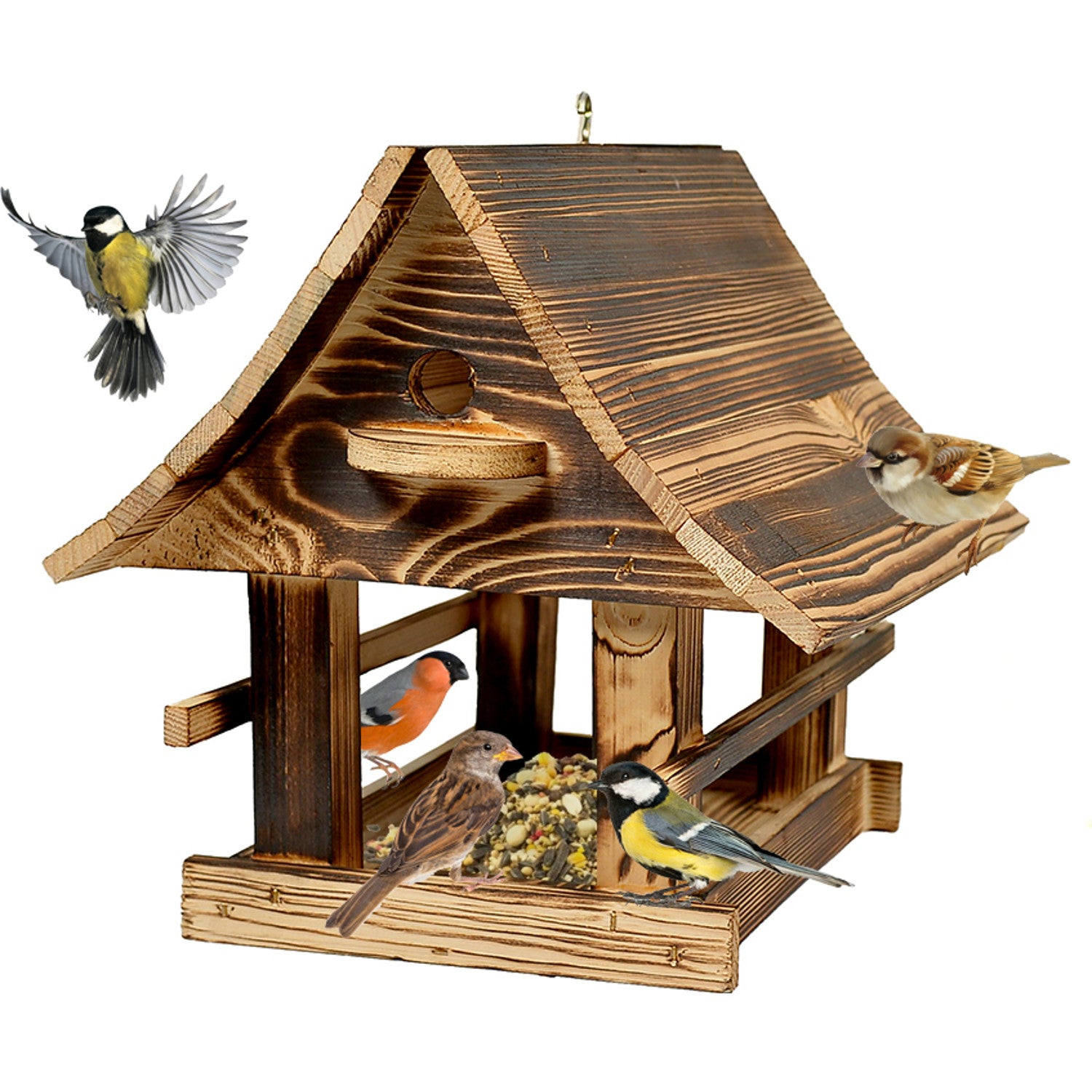 Woodok madáretető, fa, hajtogatott, barna, akasztóval a felakasztáshoz